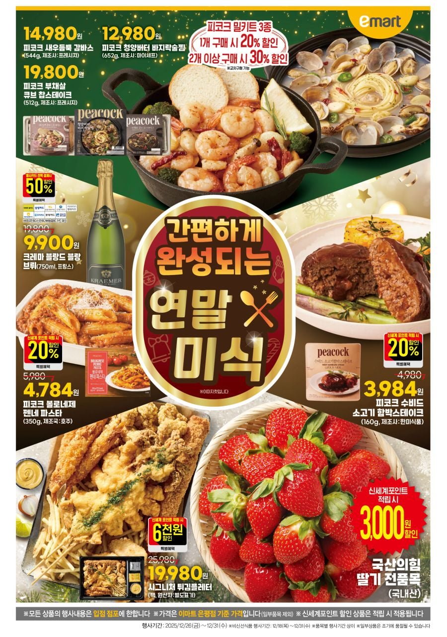 12월 26일~31일까지 진행되는 이마트 행사 전단지 할인 행사 정보입니다. 올해를 마무리하는 행사로 어떤 상품들이 저렴하게 할인 하는지 잘 참고해 보세요