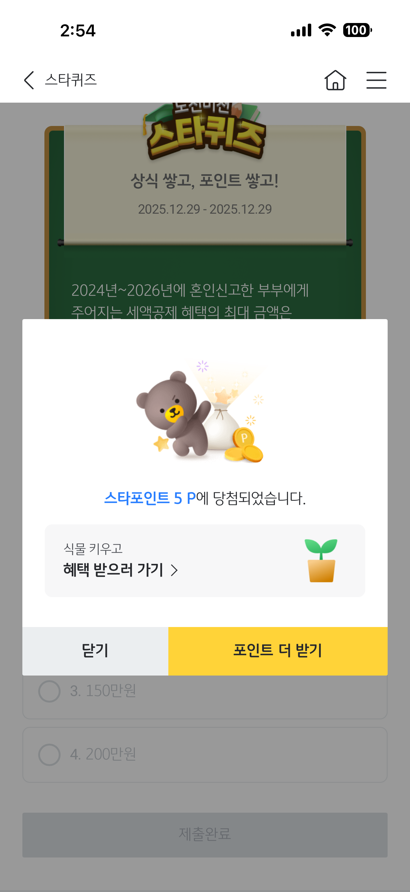 KB스타뱅킹 스타퀴즈 정답은 100만원 입니다
