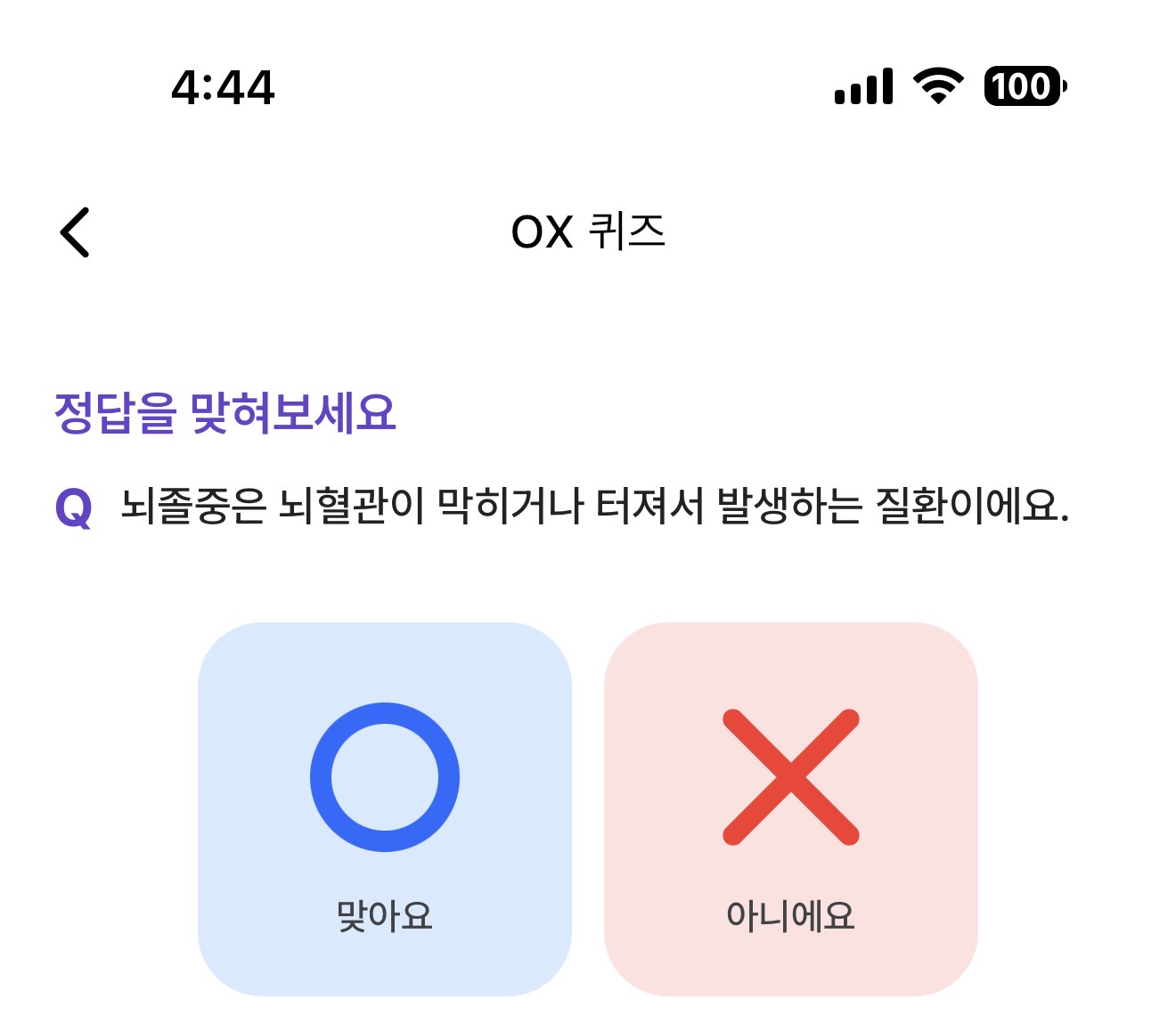 뇌졸증은 뇌혈관이 막히거나 터져서 발생하는 질환이에요. O, X 퀴즈인데요. 추운 계절이 되면 뇌졸증으로 쓰러지는 분들 많은데요. 잘 참고해서 대비하세요. 뇌졸증으로 한번 쓰러지면 생명 뿐만 아니라 불구까지도 될 수 있습니다.