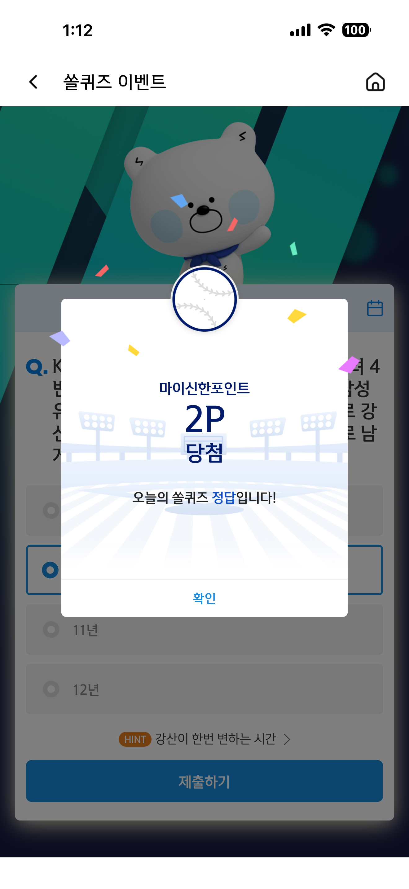 신한 슈퍼SOL 야구/상식 쏠퀴즈 1월 1일 문제입니다