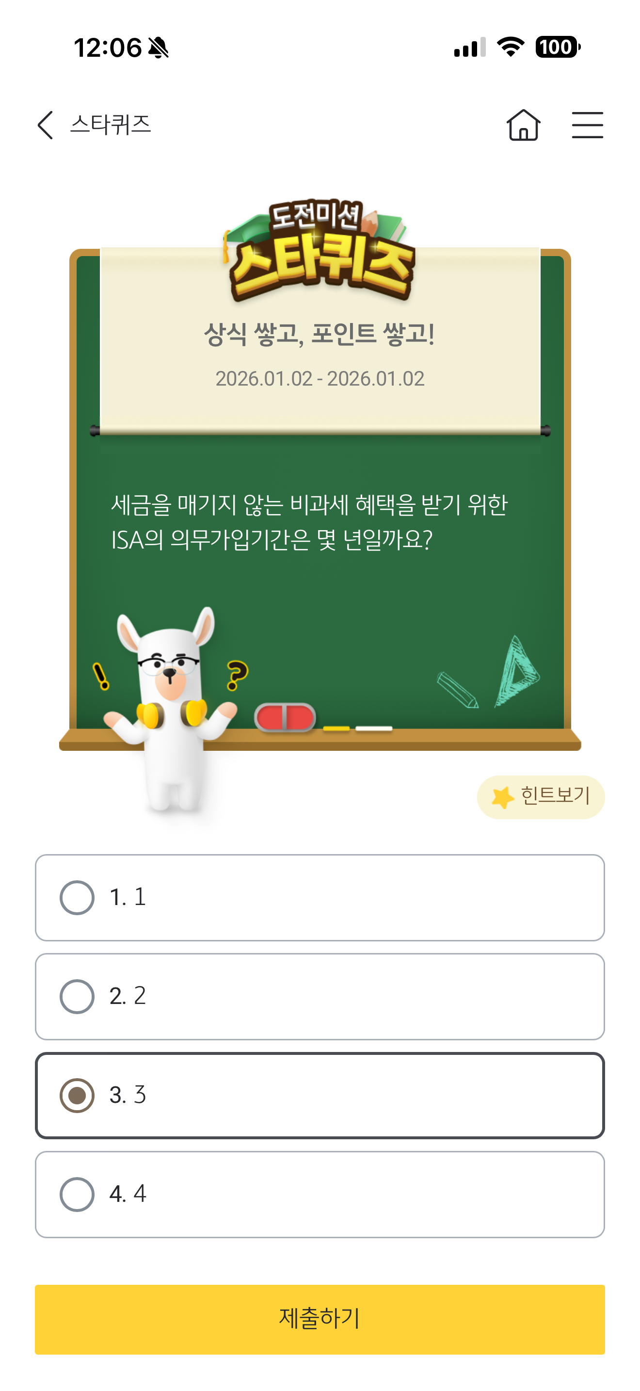KB스타뱅킹 스타퀴즈 정답은 3 입니다