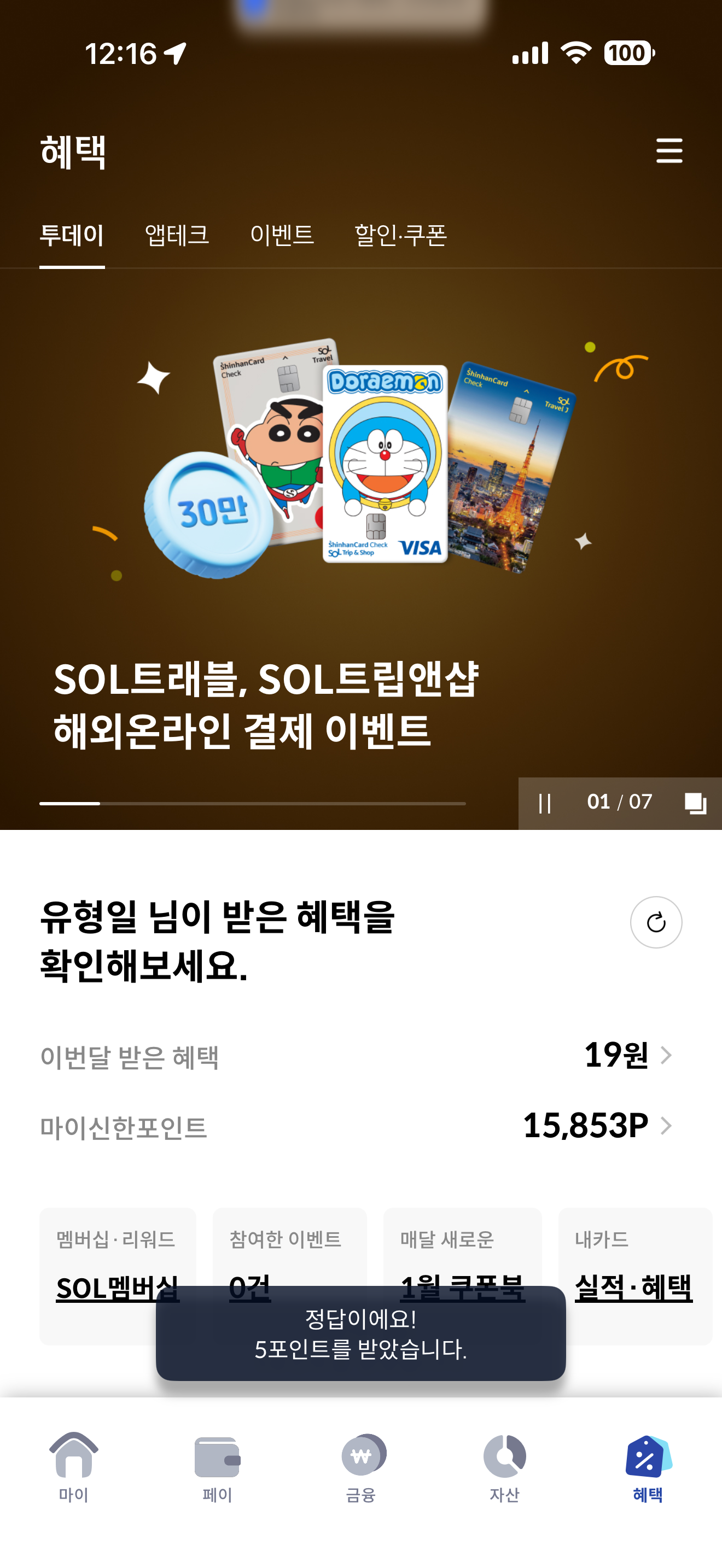 신한카드 퀴즈팡팡 1월 2일 문제입니다