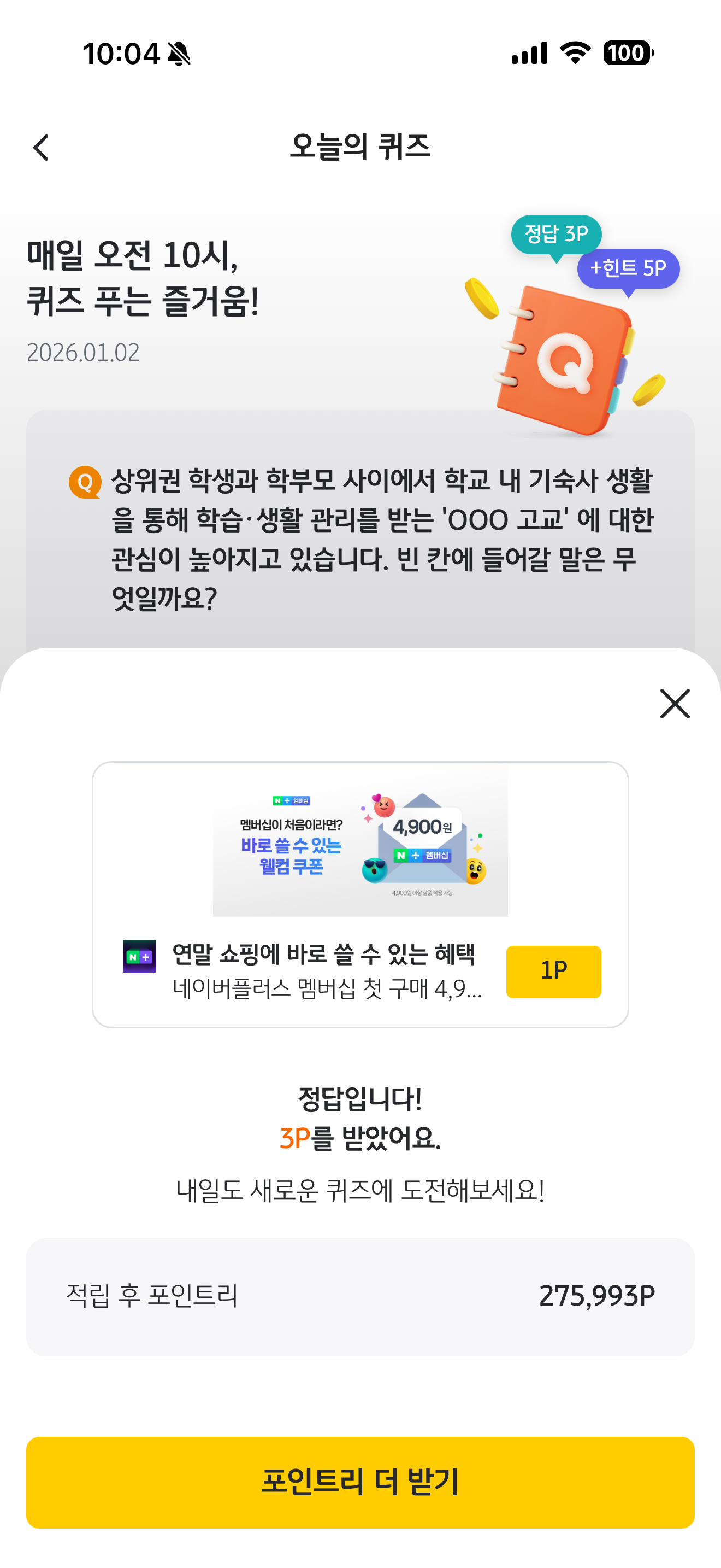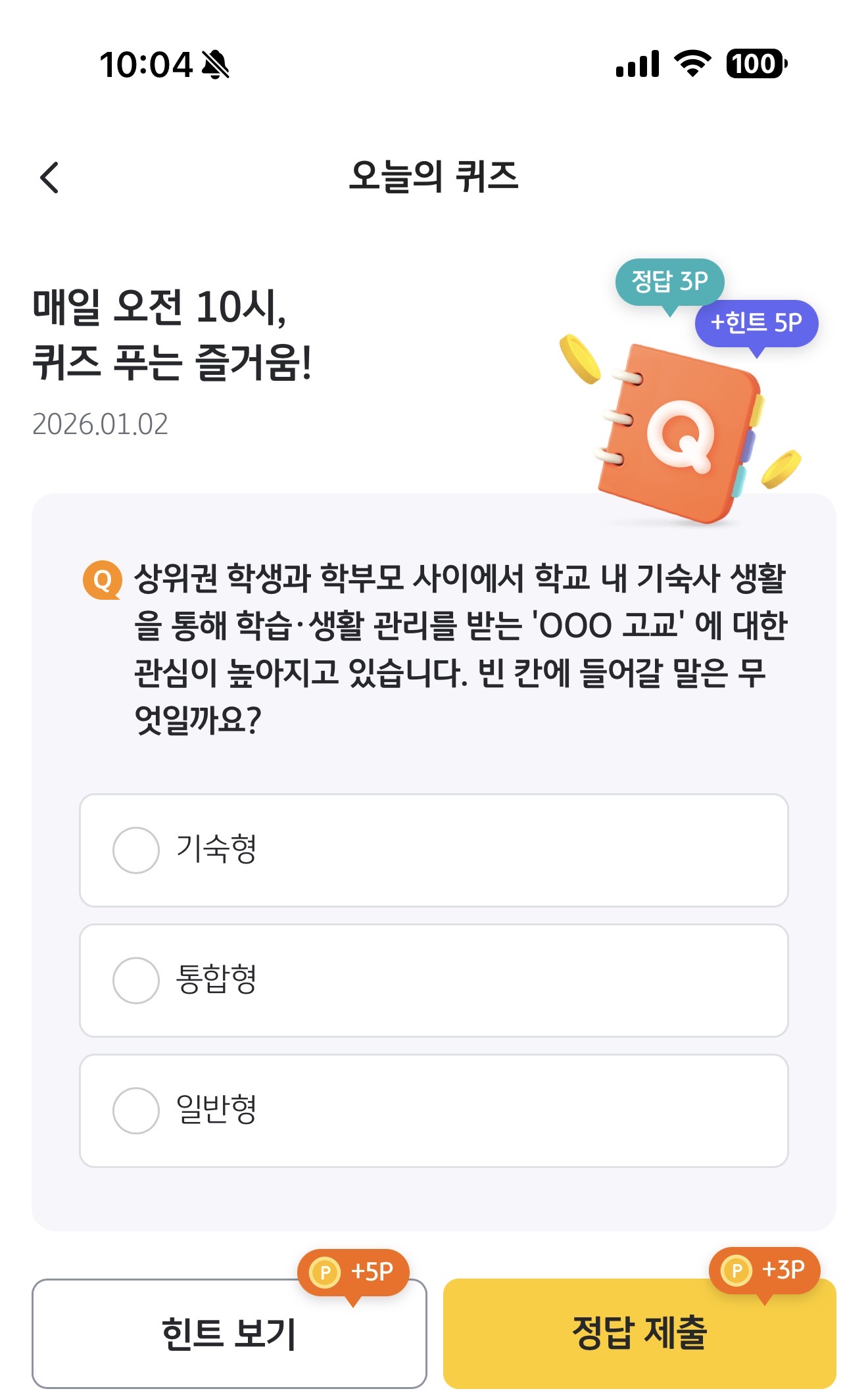 KB Pay 오늘의 퀴즈 1월 2일 정답(상위권 학생과 학부모 사이에서 학교 내 기숙사 생활을 통해 학습 생활 관리를 받는 'OOO 고교'에 대한 관심이 높아지고 있습니다. 빈 칸에 들어갈 말은 무엇일까요?)