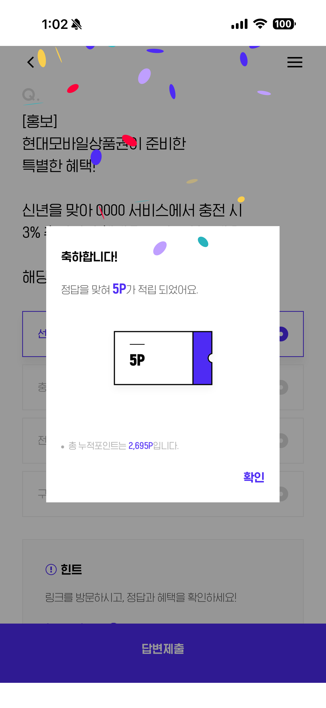 H포인트 퀴즈 정답은 선물하기 입니다
