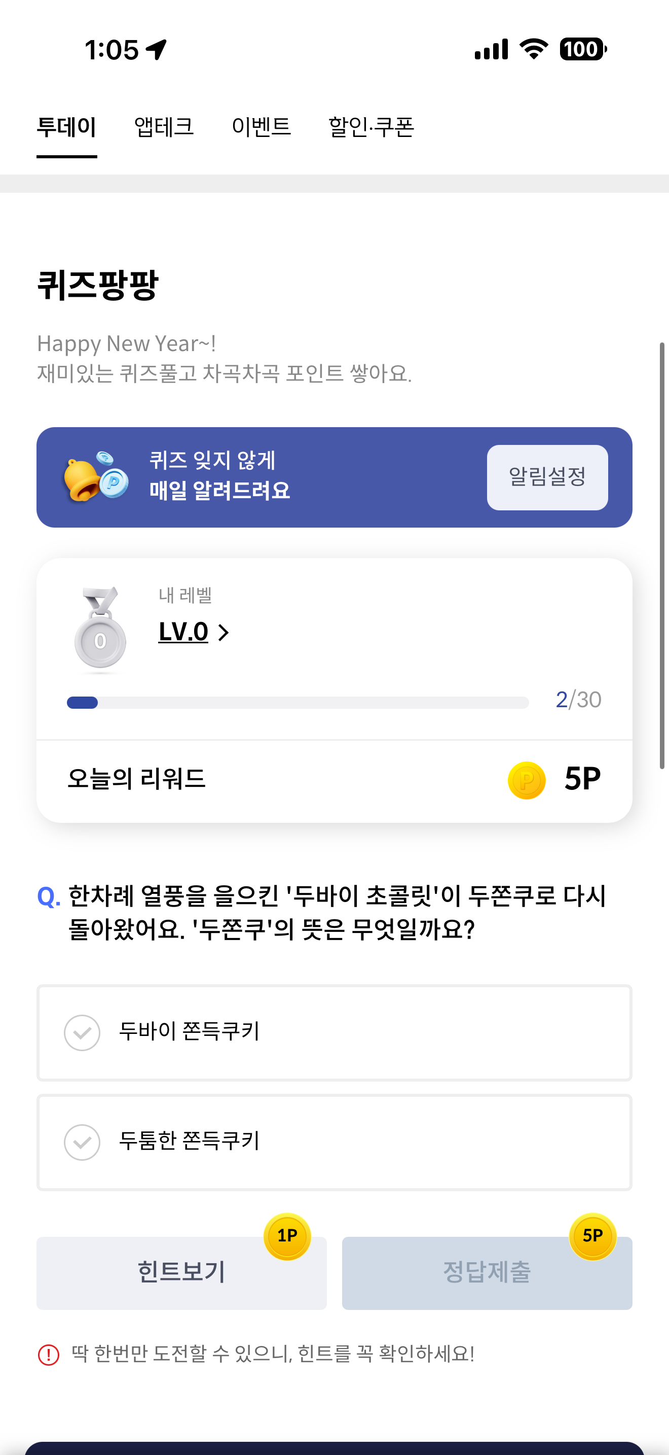 신한카드 퀴즈팡팡 1월 3일 문제입니다