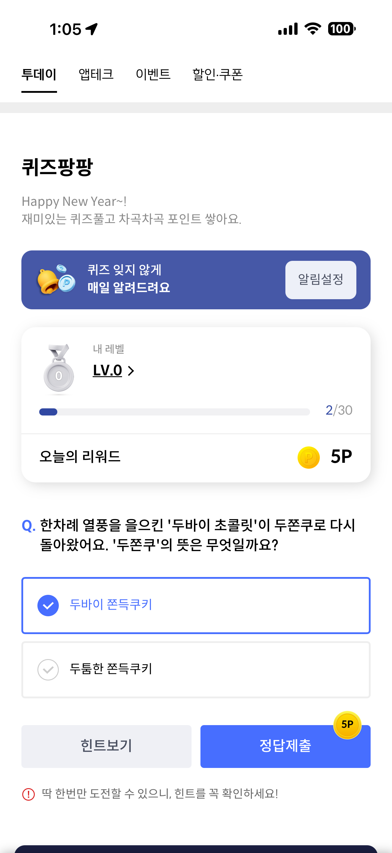 신한카드 퀴즈팡팡 정답은 두바이 쫀득쿠키 입니다