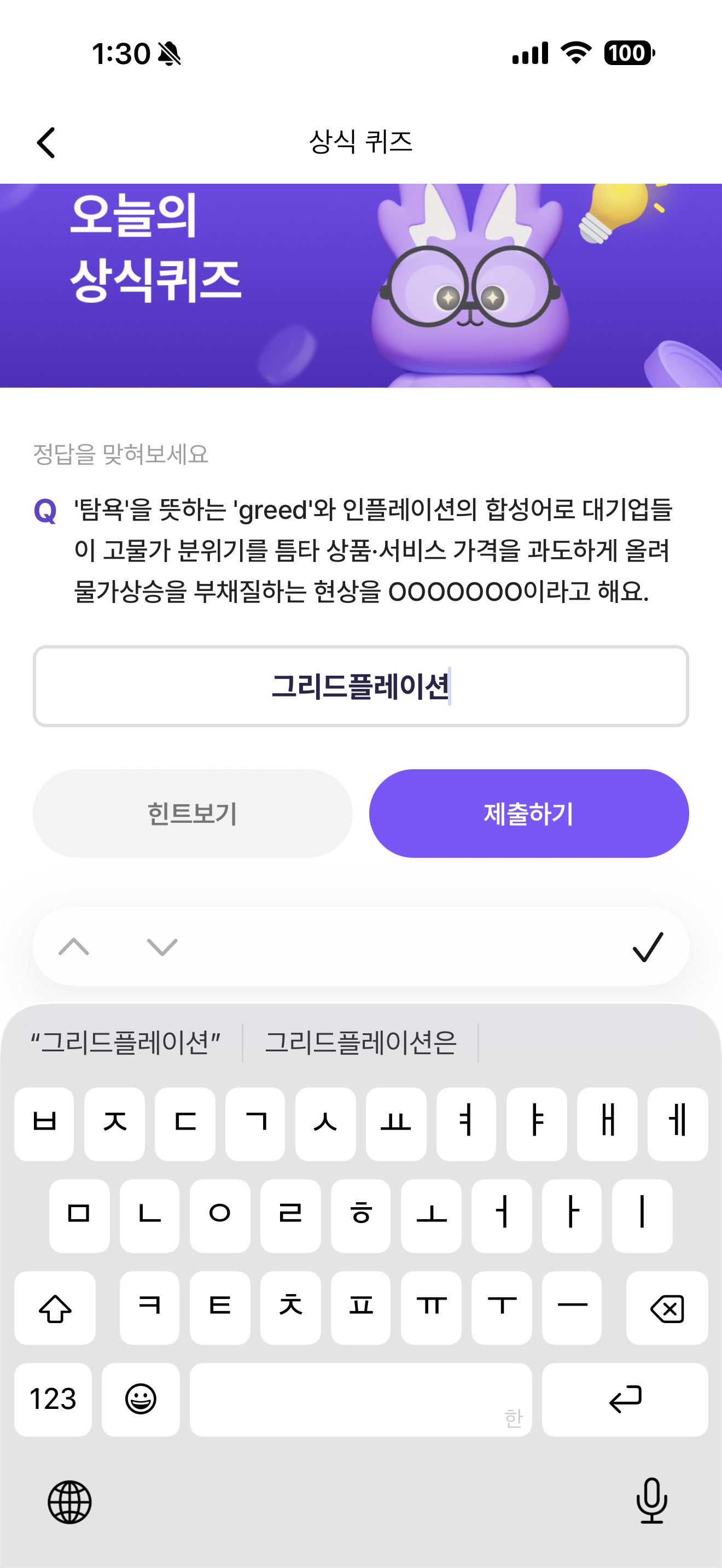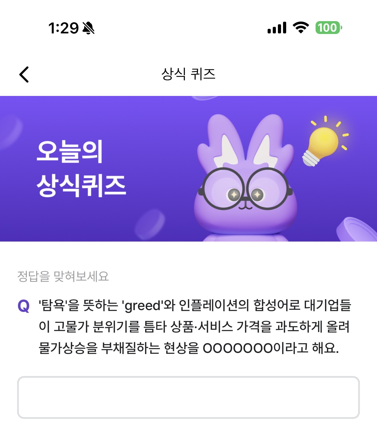 '탐욕'을 뜻하는 'greed'와 인플레이션의 합성어로 대기업들이 고물가 분위기를 틈타 상품 서비스 가격을 과도하게 올려 물가상승을 부채질하는 현상을 OOOOOOO이라고 해요. 주관식 퀴즈인데요.