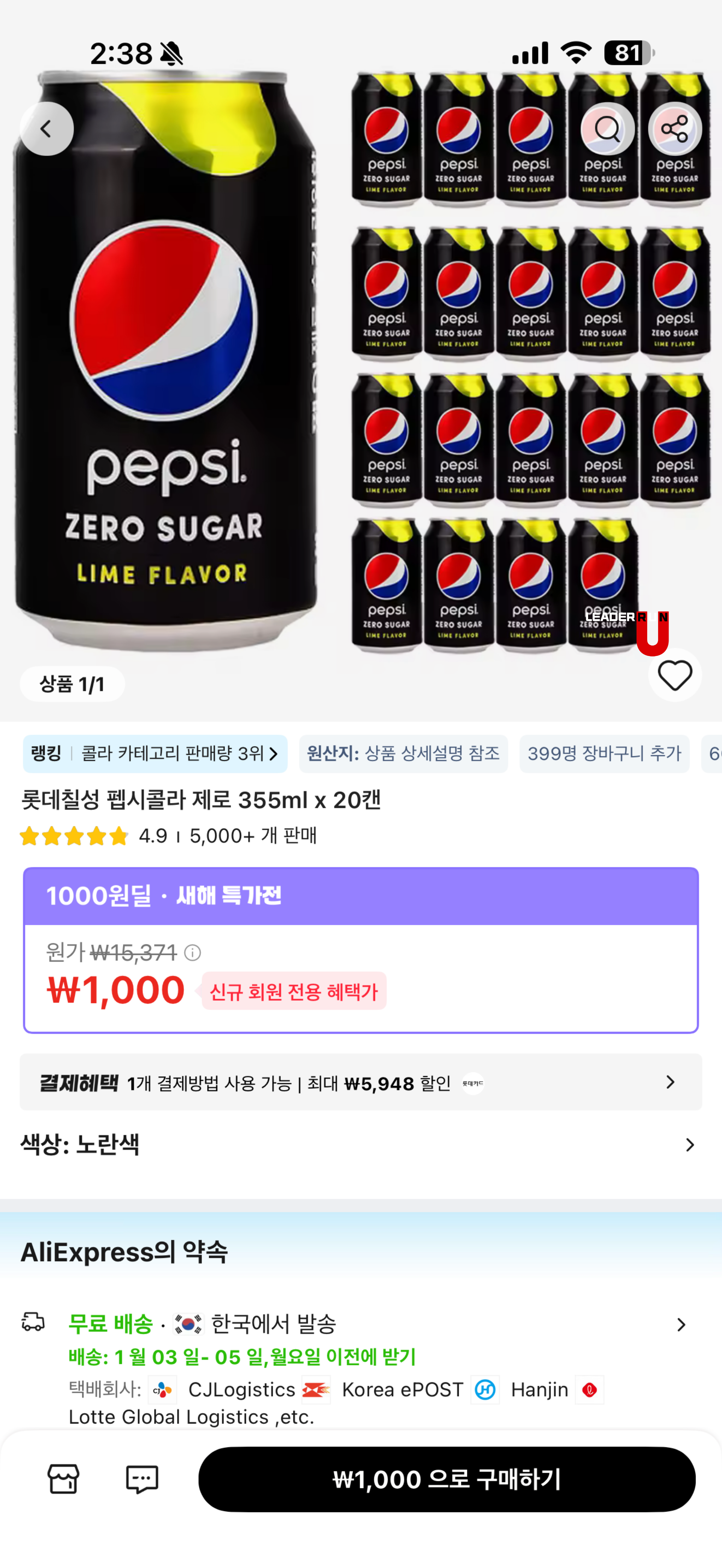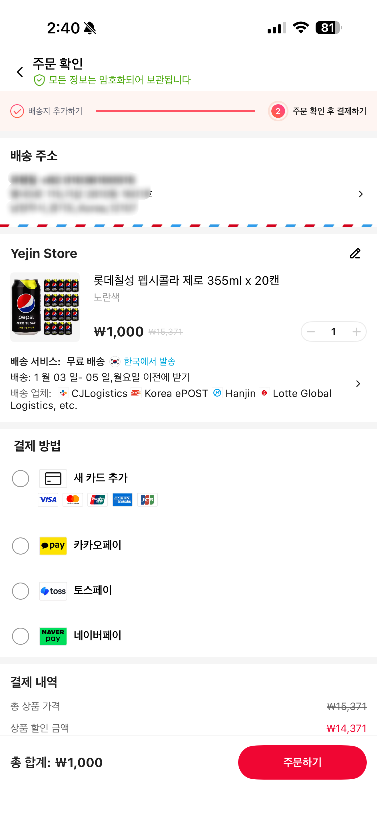 저도 반신반의하면서 펩시 제로 355ml 20캔을 직접 주문해봤는데요.
