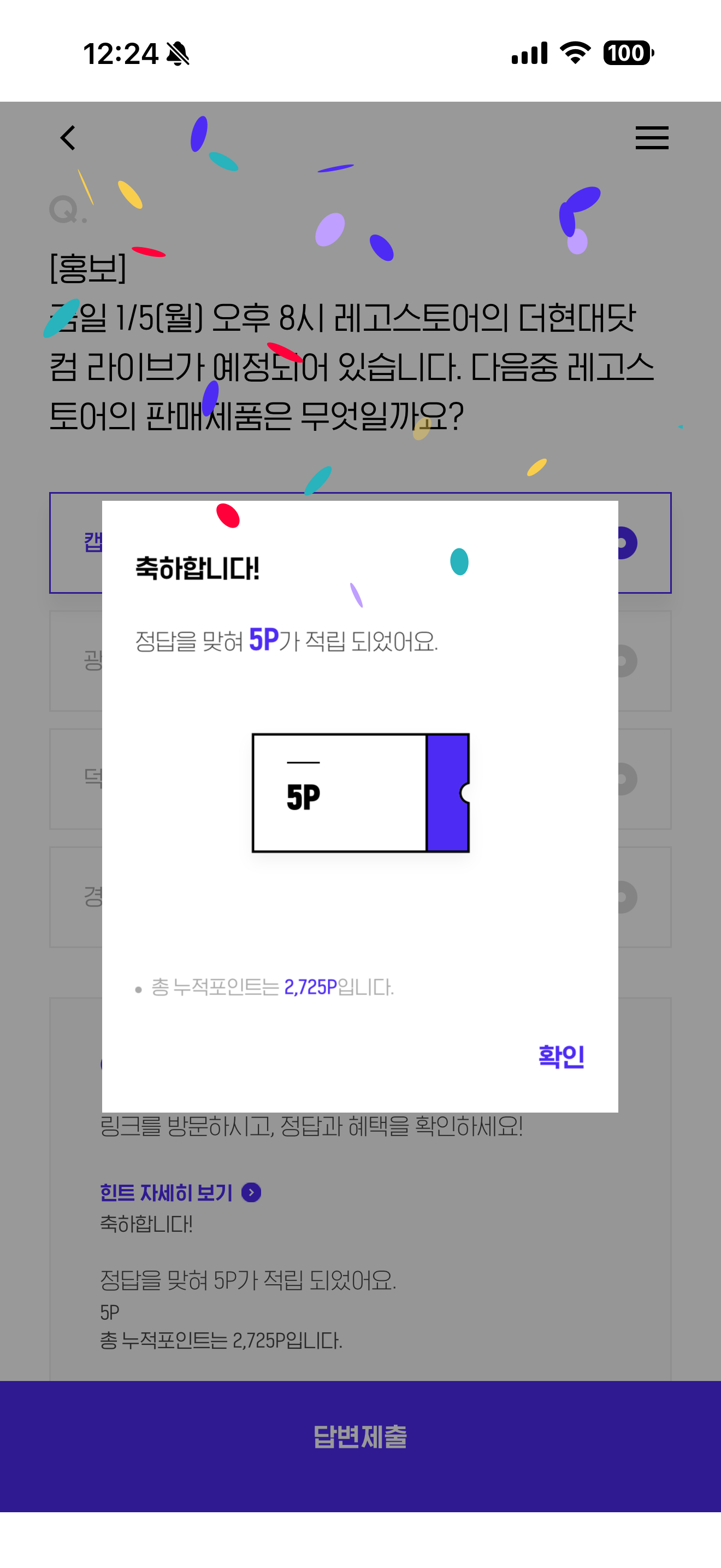 H포인트 퀴즈 1월 5일 문제입니다