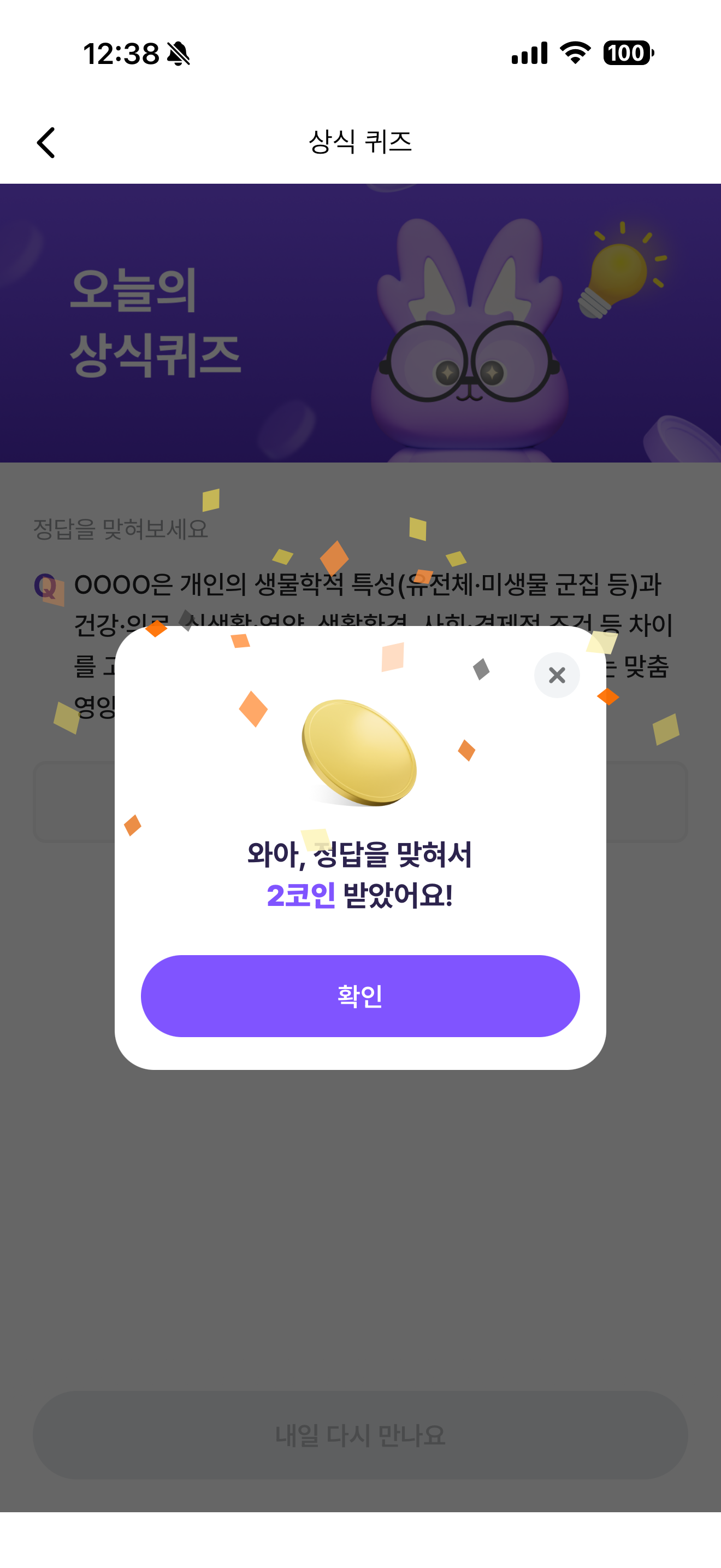 비트버니 오늘의 퀴즈 정답은 정밀영양 입니다