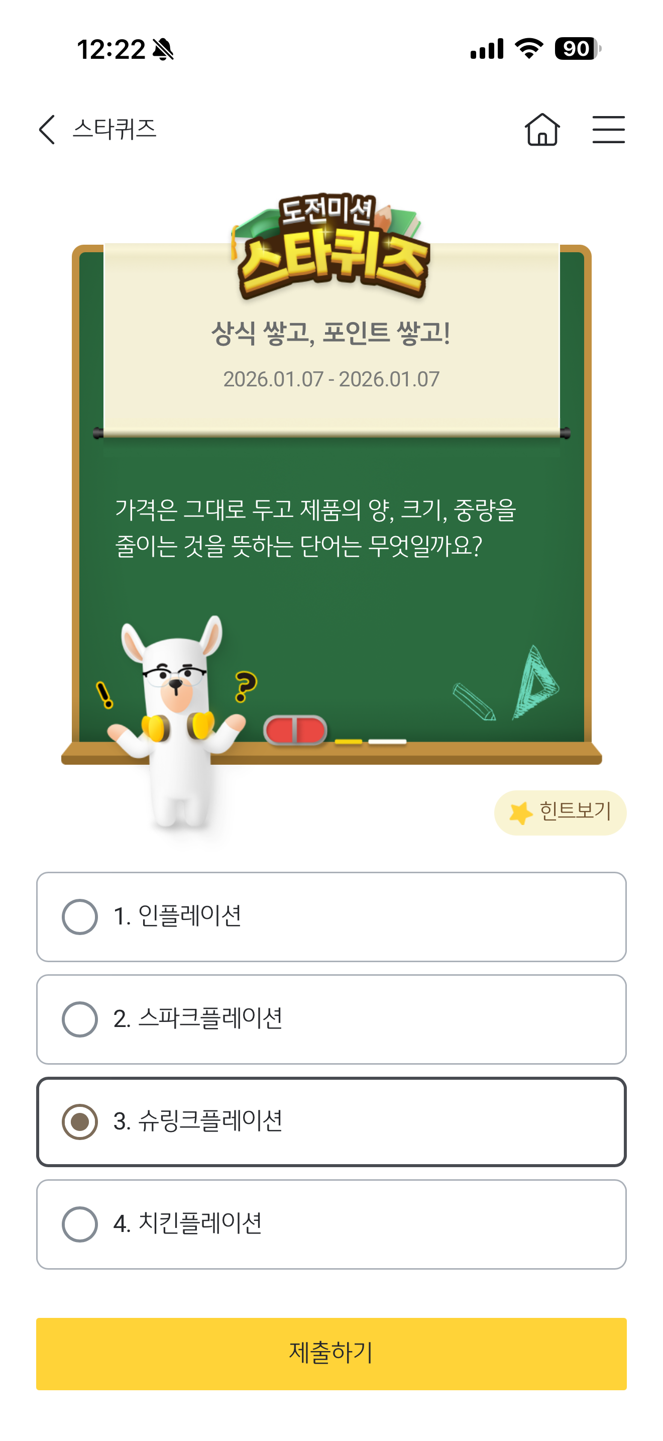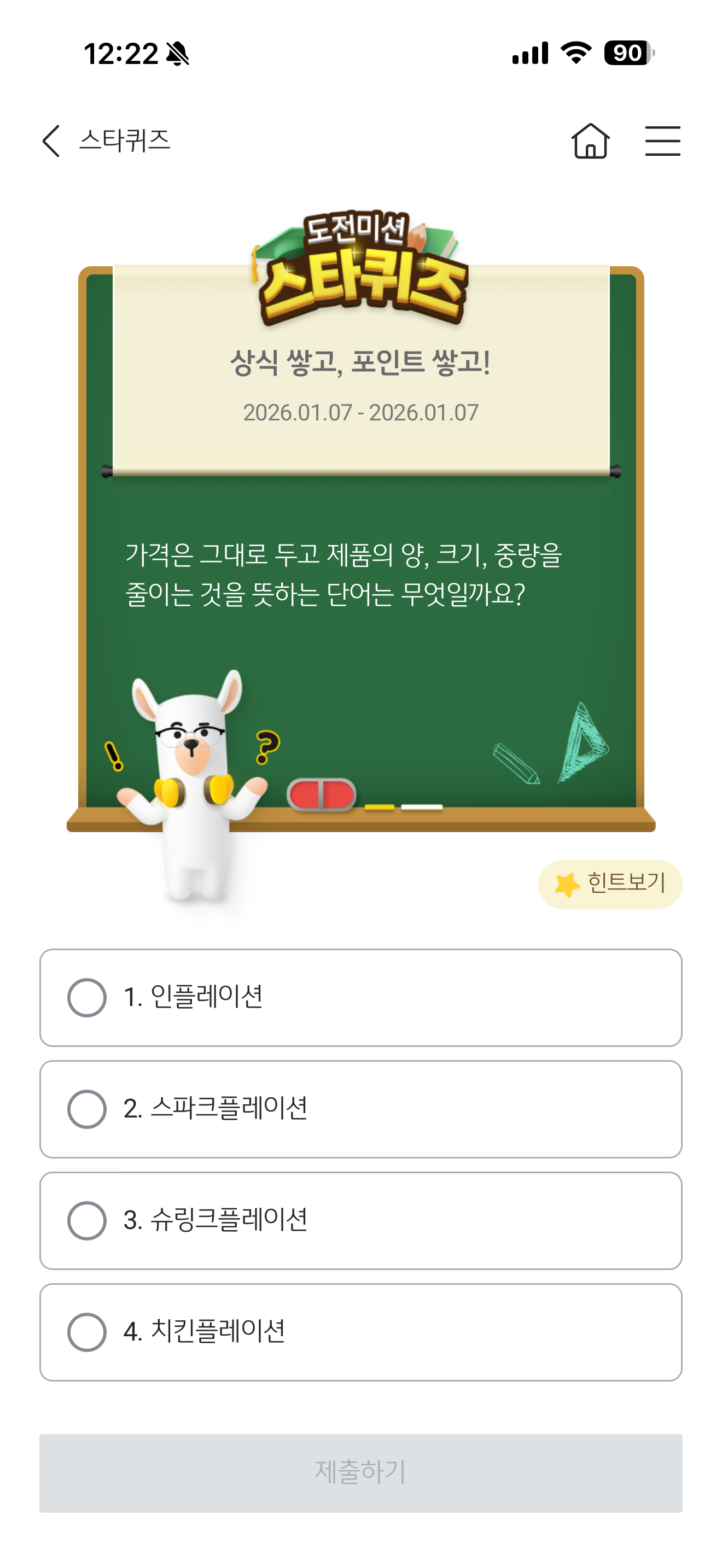KB스타뱅킹 스타퀴즈 정답은 슈링크플레이션 입니다