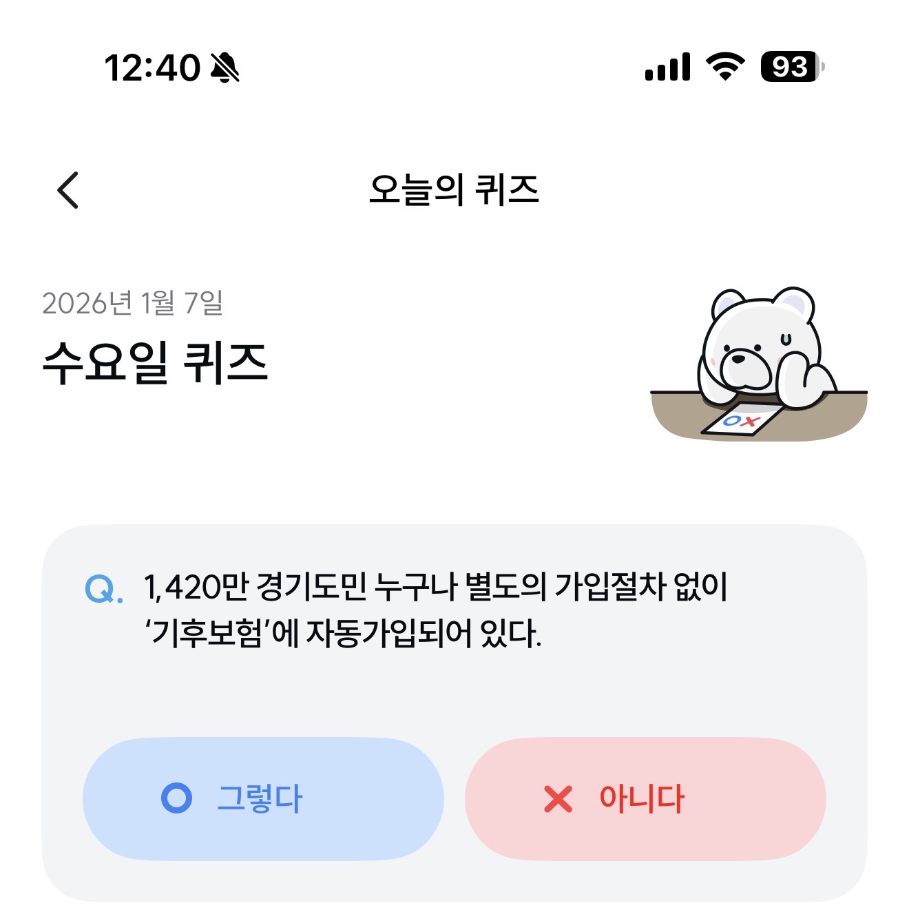 기후행동 기회소득 오늘의 퀴즈 정답은 그렇다 입니다
