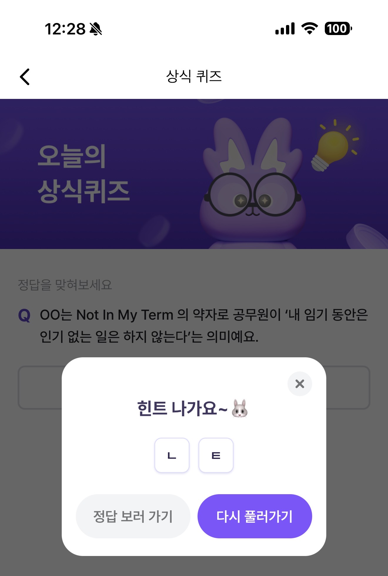 비트버니 오늘의 퀴즈 초성 힌트는 ㄴㅌ 입니다