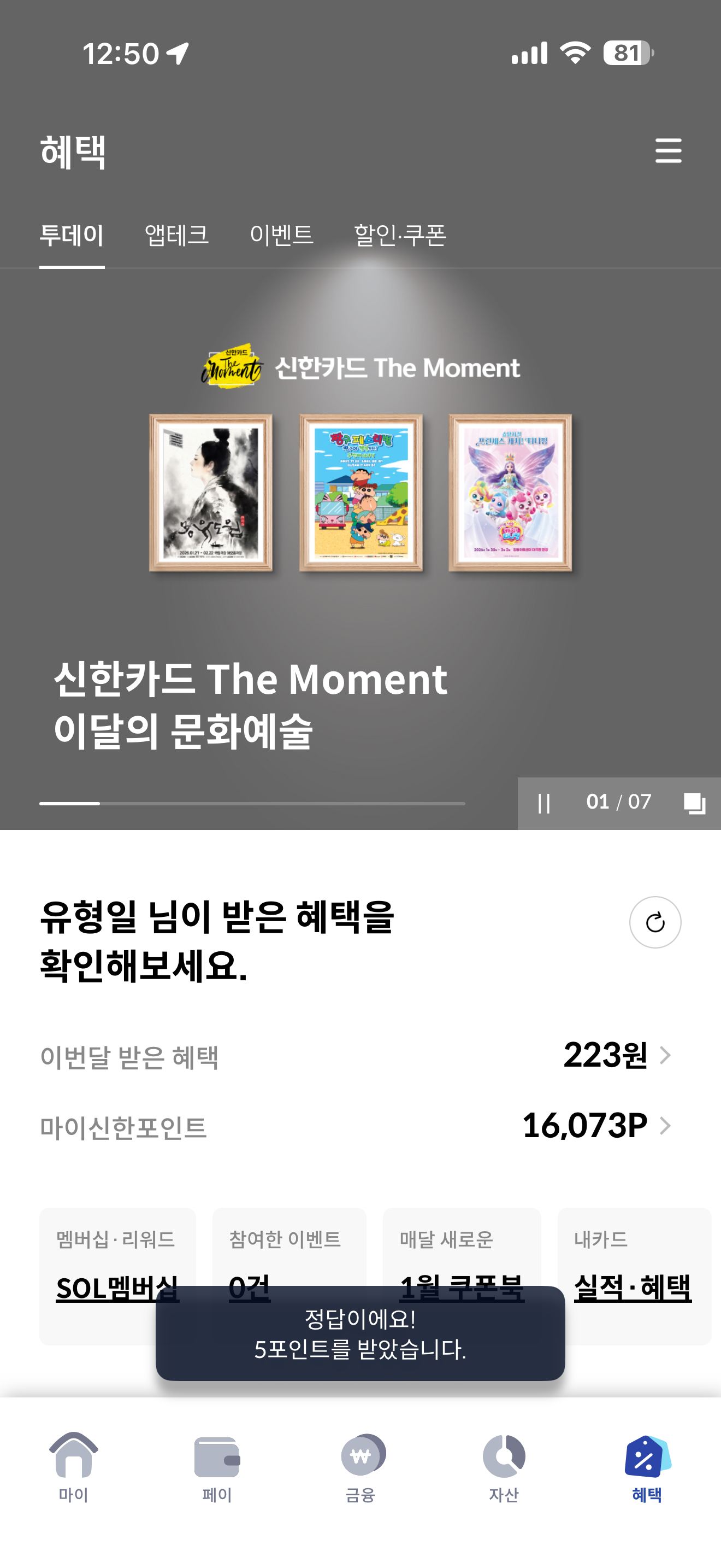 신한카드 퀴즈팡팡 1월 11일 문제입니다