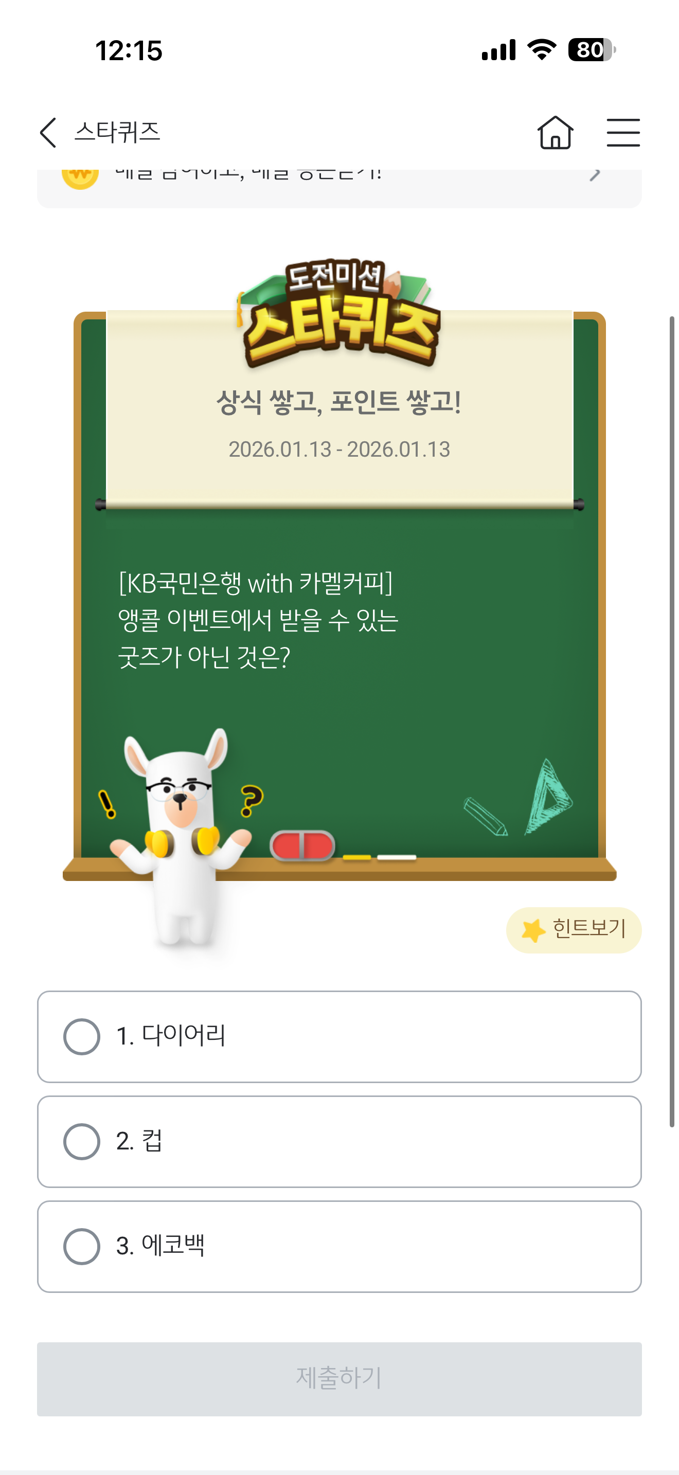 KB스타뱅킹 스타퀴즈 정답은 다이어리 입니다