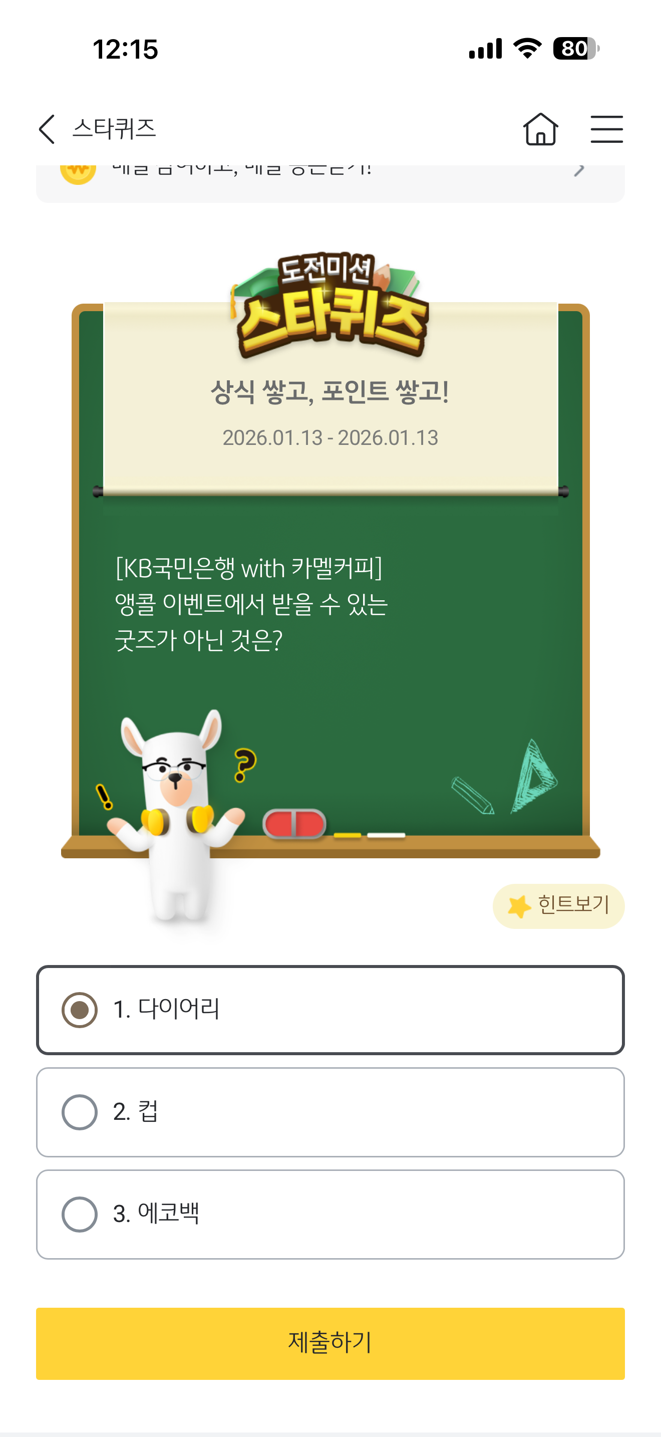 KB스타뱅킹 스타퀴즈 정답은 다이어리 입니다