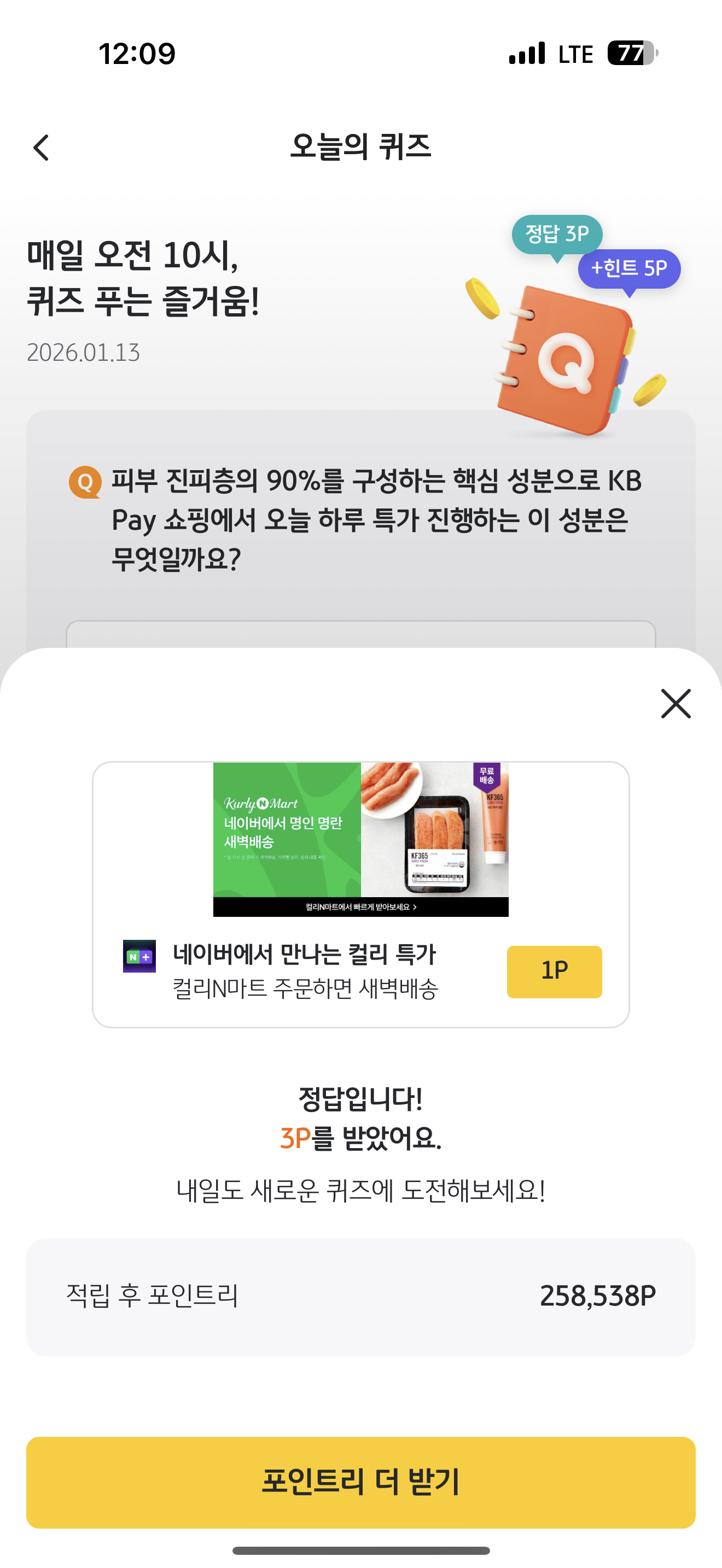 KB Pay 오늘의 퀴즈 정답은 콜라겐 입니다