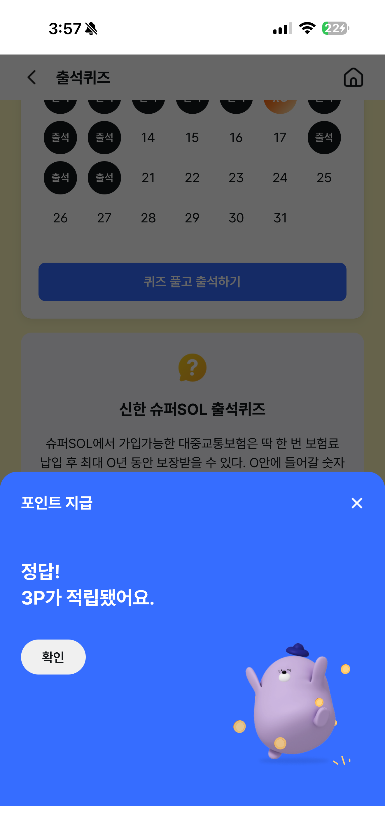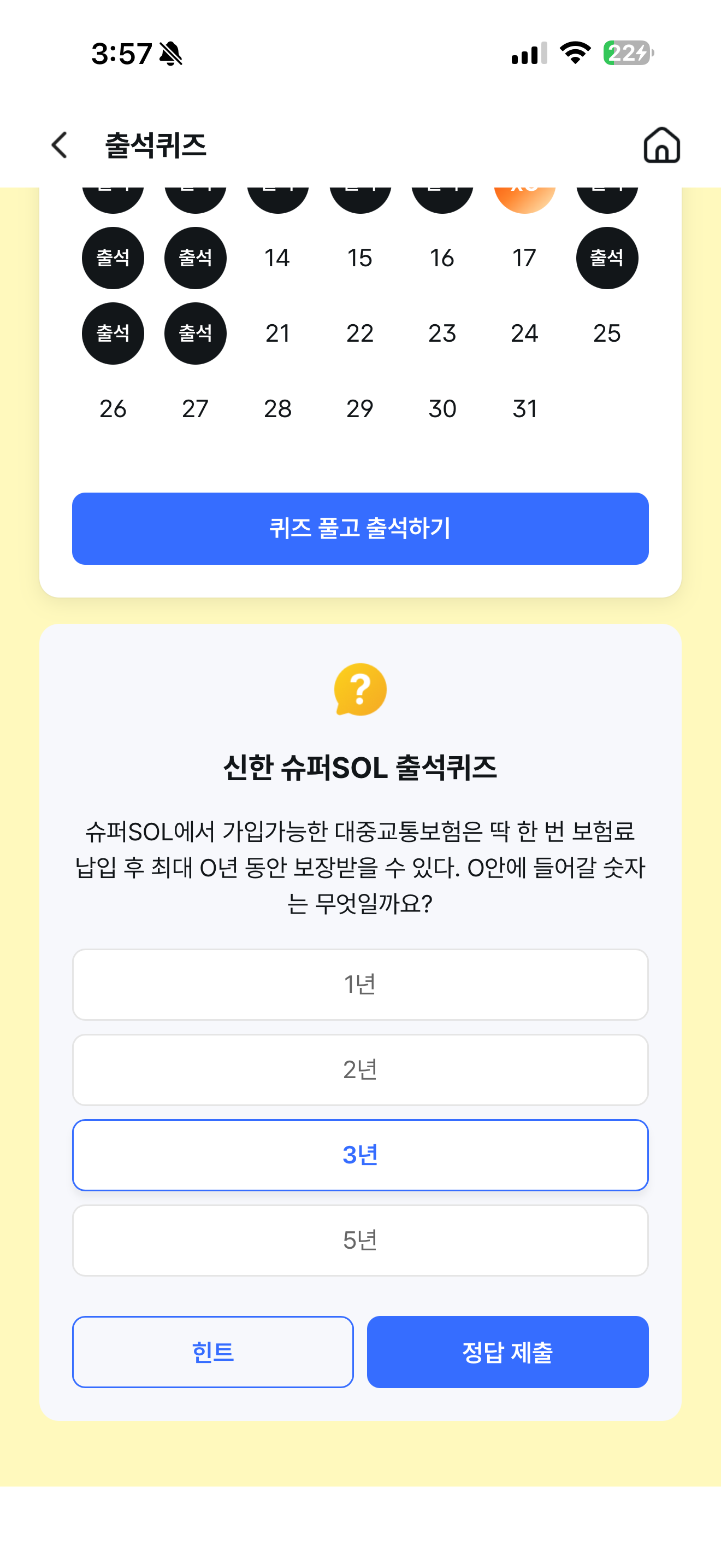 신한 슈퍼SOL 출석퀴즈 정답은 3년 입니다