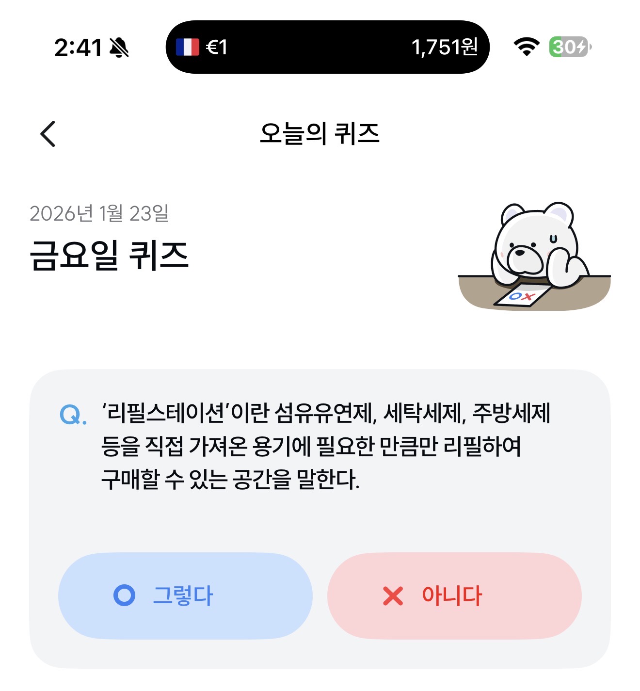 '리필스테이션'이란 섬유유연제, 세탁세제, 주방세제 등을 직접 가져온 용기에 필요한 만큼만 리필하여 구매할 수 있는 공간을 말한다. 그렇다. 아니다 선택하면 되는데요. 리필스테이션은 무엇일까요? 잘 참고해 두세요