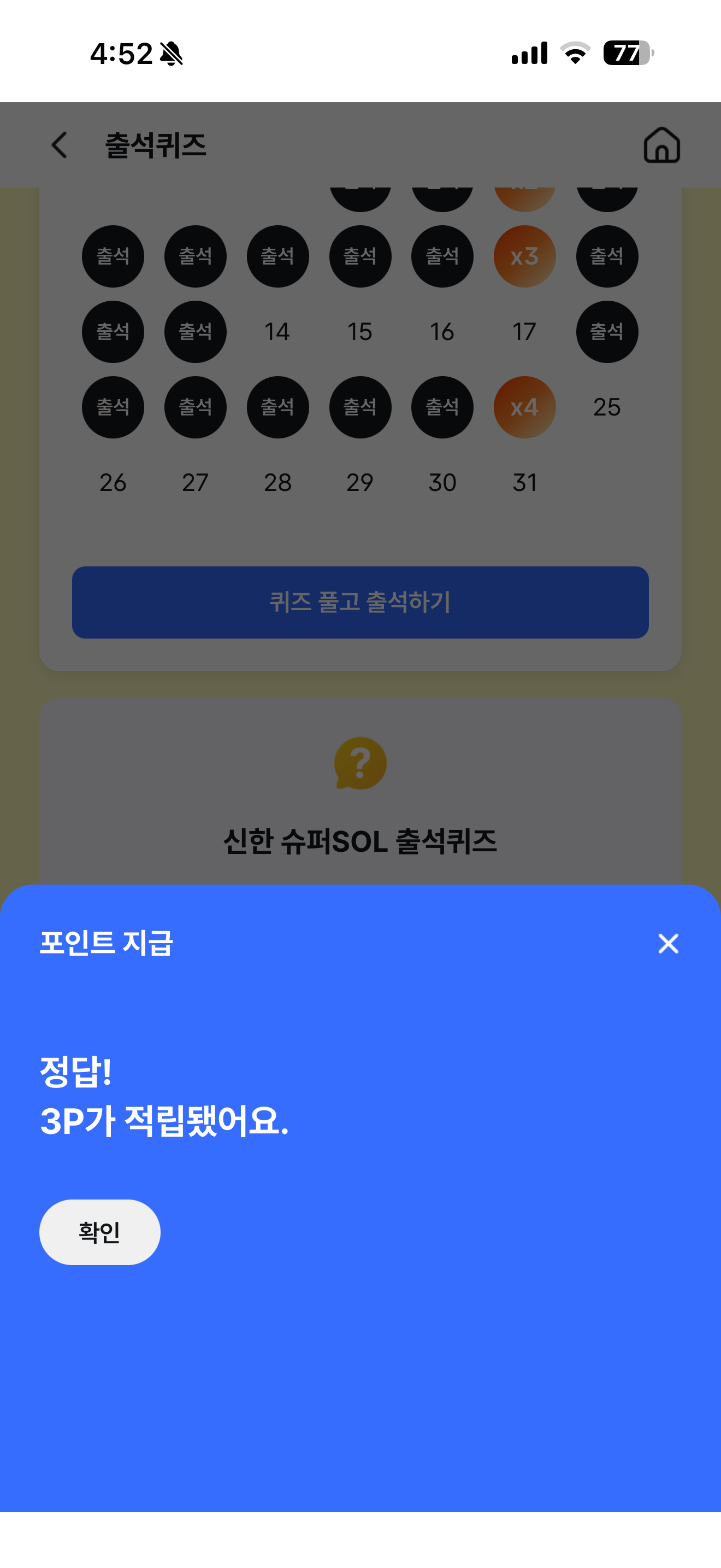 신한 슈퍼SOL 출석퀴즈 1월 25일 문제입니다