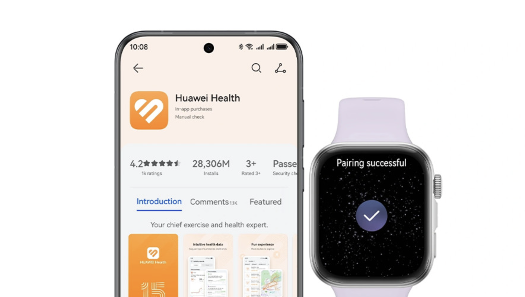 iOS, 안드로이드 모두 문제 없이 사용 가능하고 화웨이 헬스+ 앱으로 모든 기능을 사용할 수 있어요.