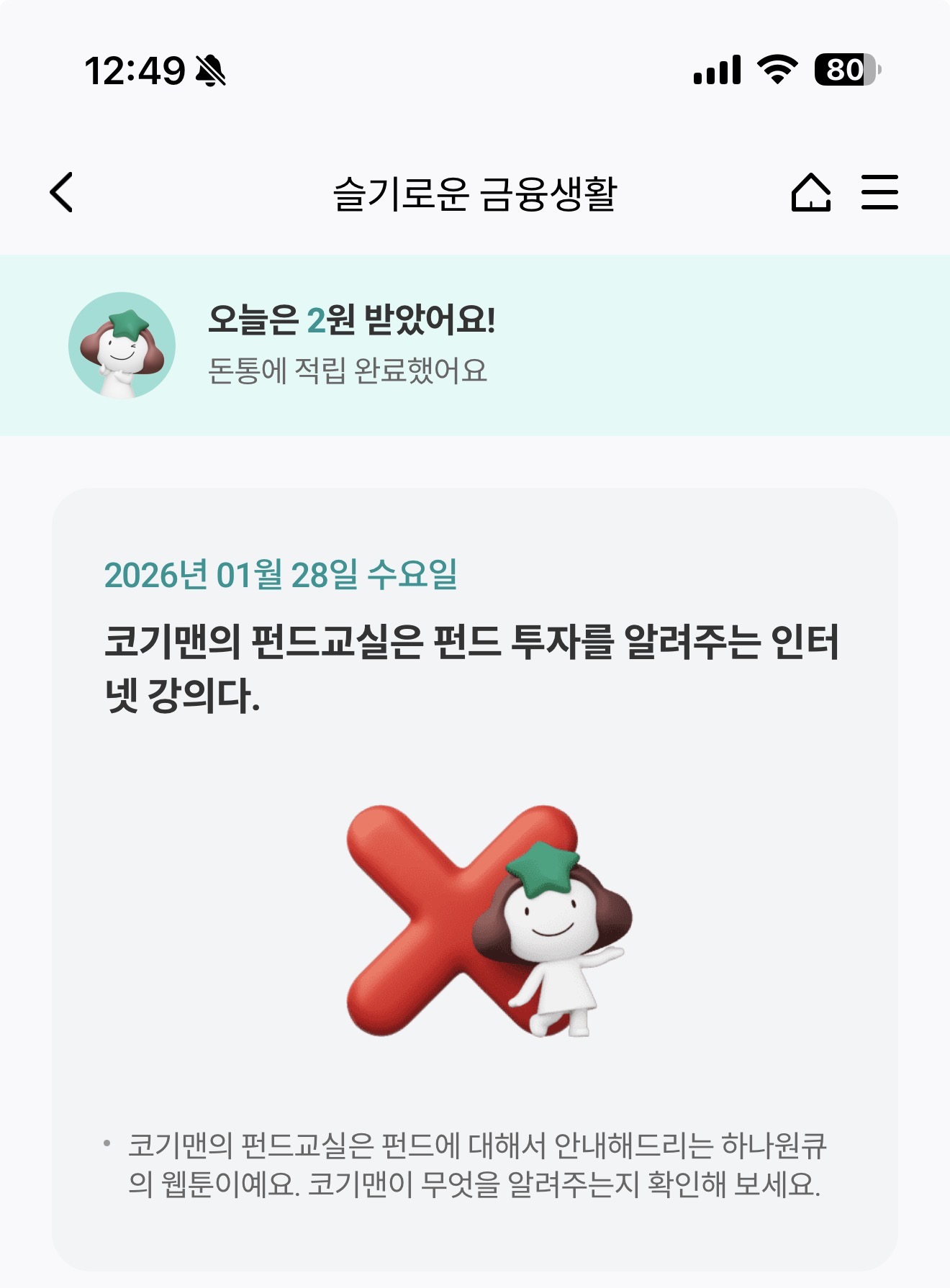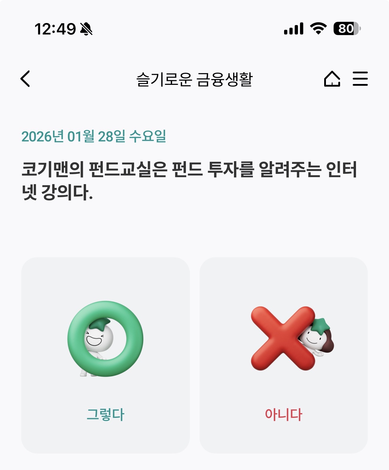 하나원큐 슬기로운 금융생활 OX 퀴즈 1월 28일 정답(코기맨의 펀드교실은 펀드 투자를 알려주는 인터넷 강의다)