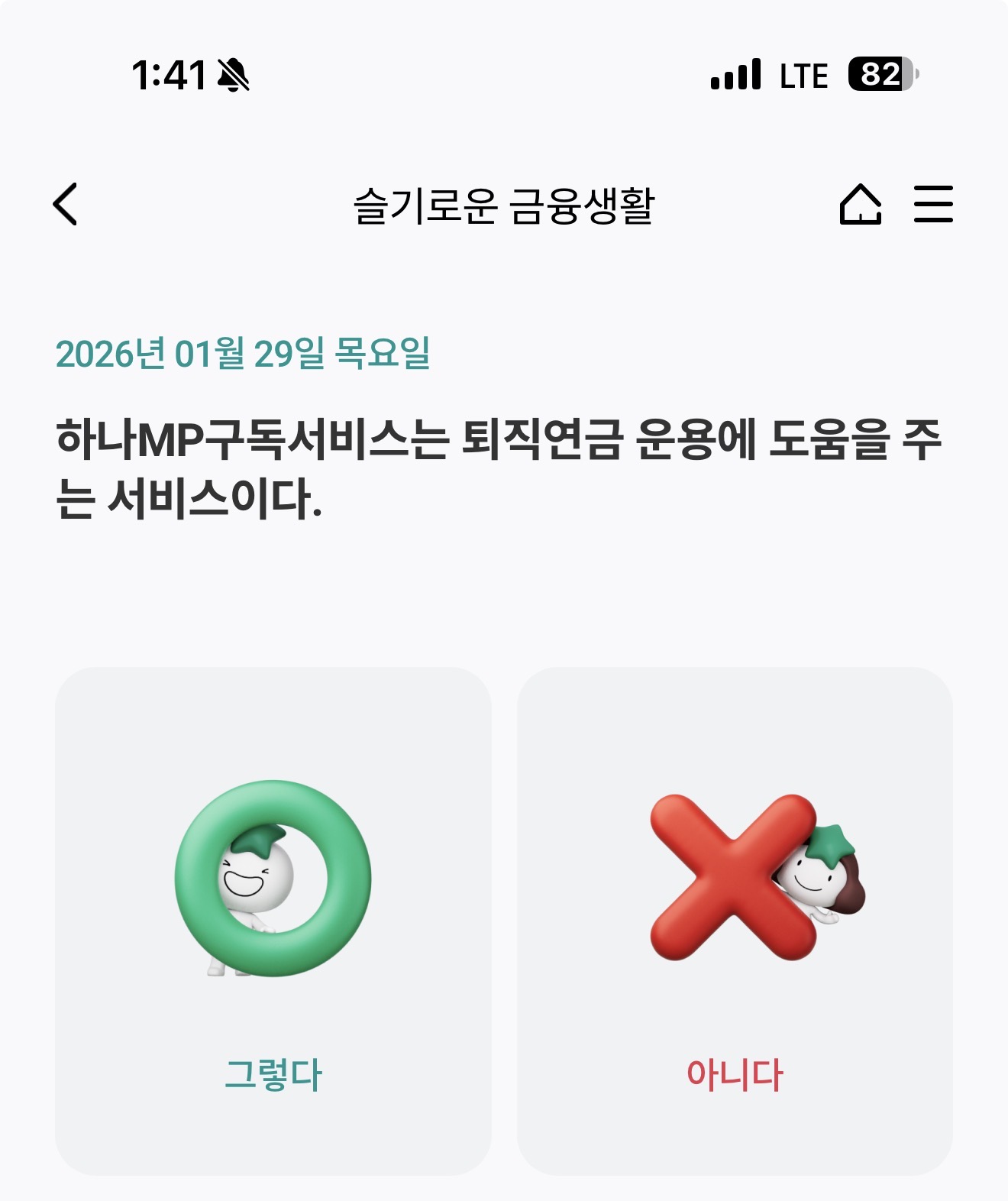 하나MP구독서비스는 퇴직연금 운용에 도움을 주는 서비스이다. 그렇다 아니다 선택하면 되는데요. 하나MP구독 서비스가 뭘까요? 퇴직연금은 노후를 위한 투자인데요. 잘 참고해 두세요