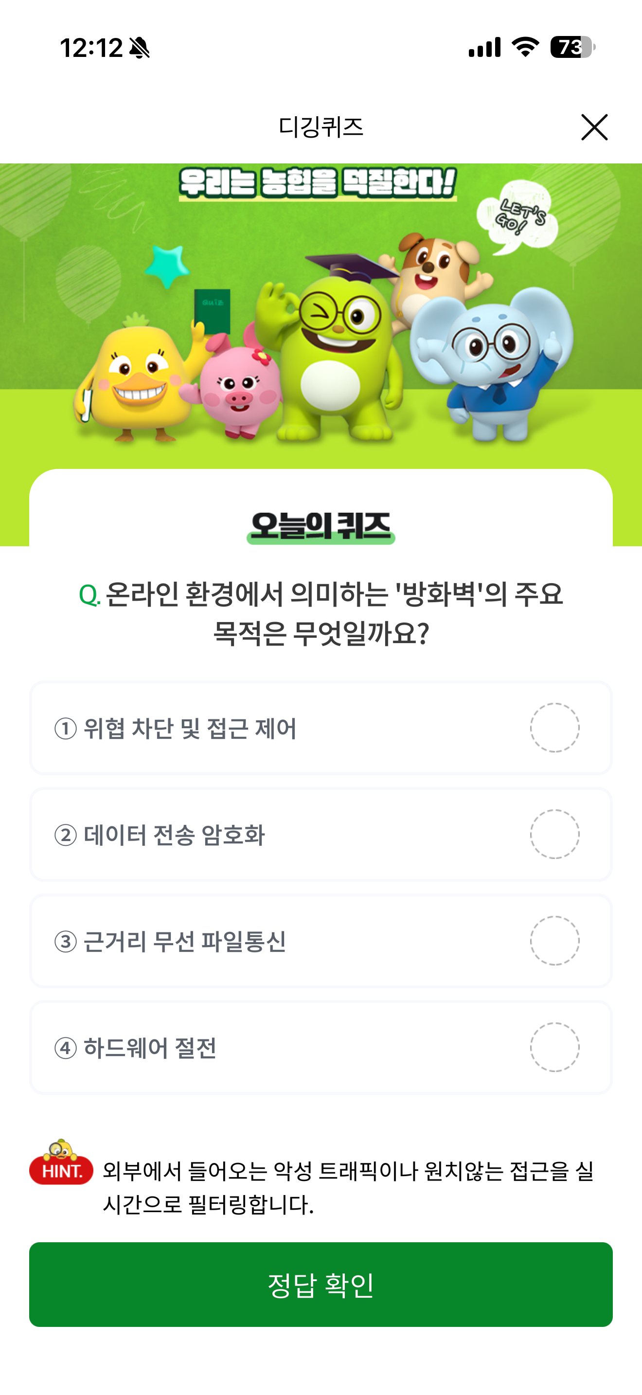 NH올원뱅크 디깅퀴즈 정답은 위협 차단 및 접근 제어 입니다