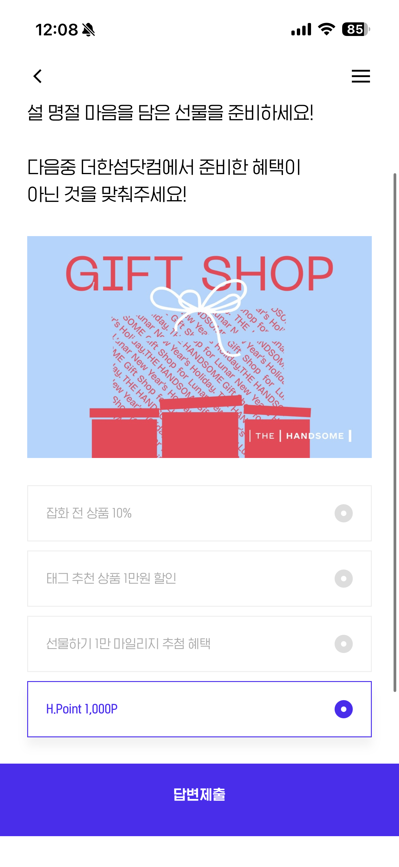 H포인트 퀴즈 1월 31일 정답(오늘이 마지막! 더한섬닷컴 GIFT SHOP 설 명절 마음을 담은 선물을 준비하세요! 다음중 더한섬닷컴에서 준비한 혜택이 아닌 것을 맞춰주세요!)