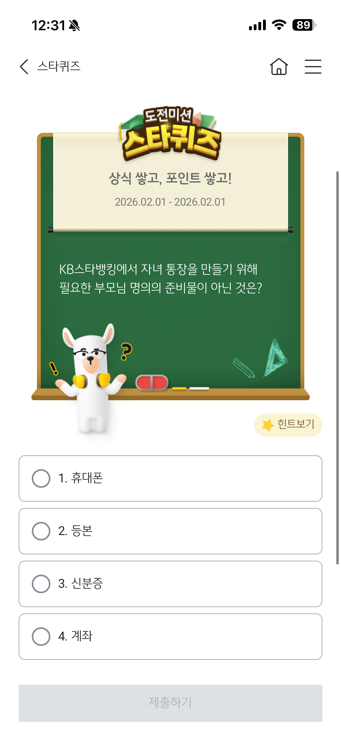 KB스타뱅킹 스타퀴즈 2월 1일 문제입니다