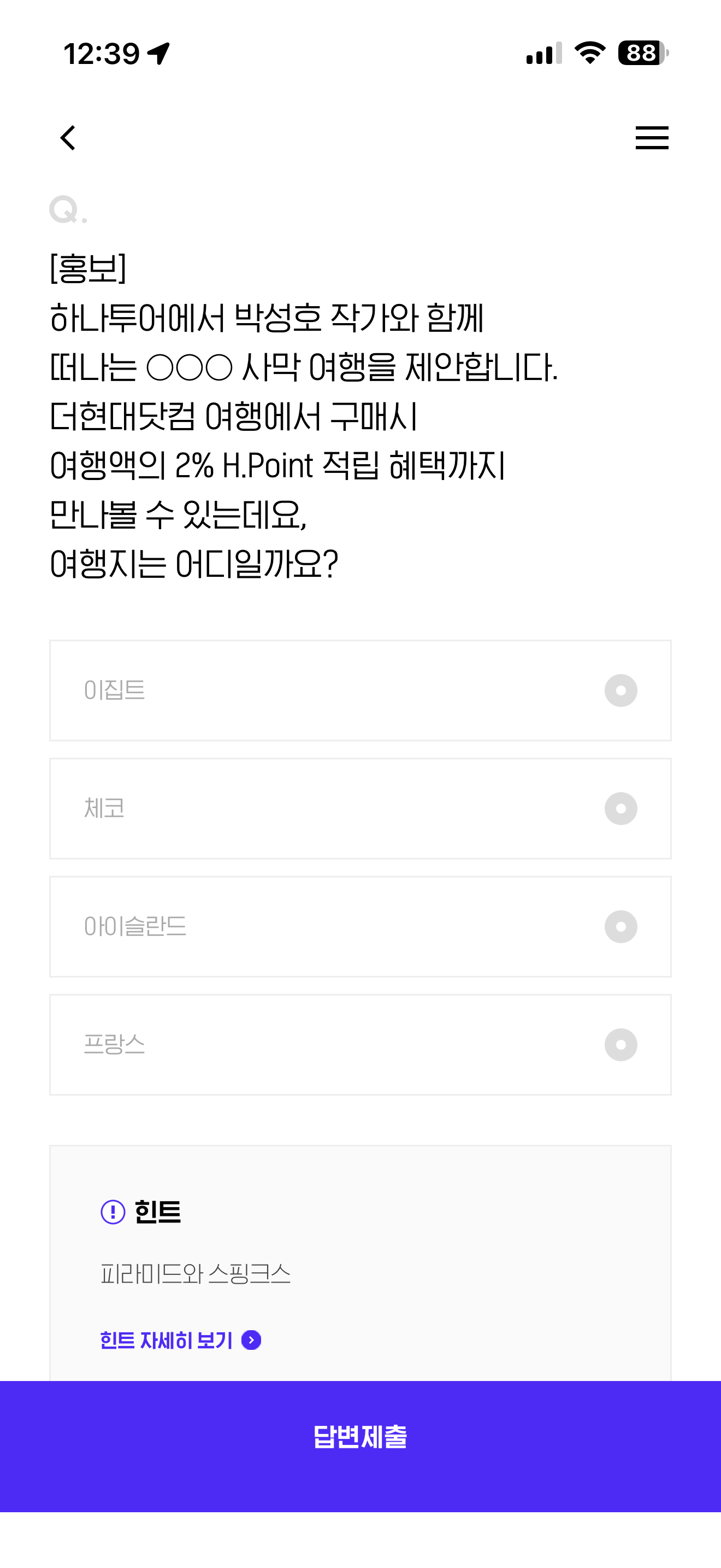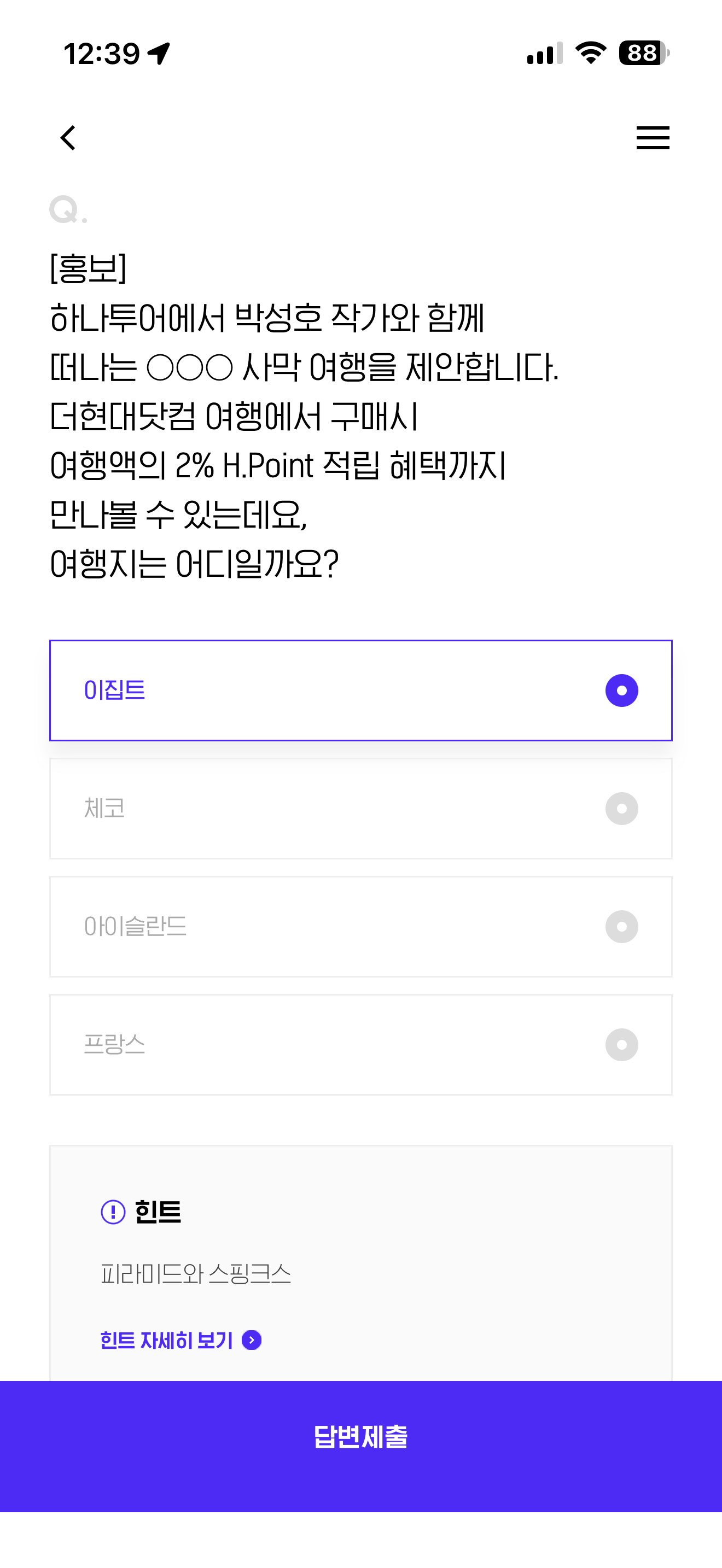 H포인트 퀴즈 정답은 이집트 입니다