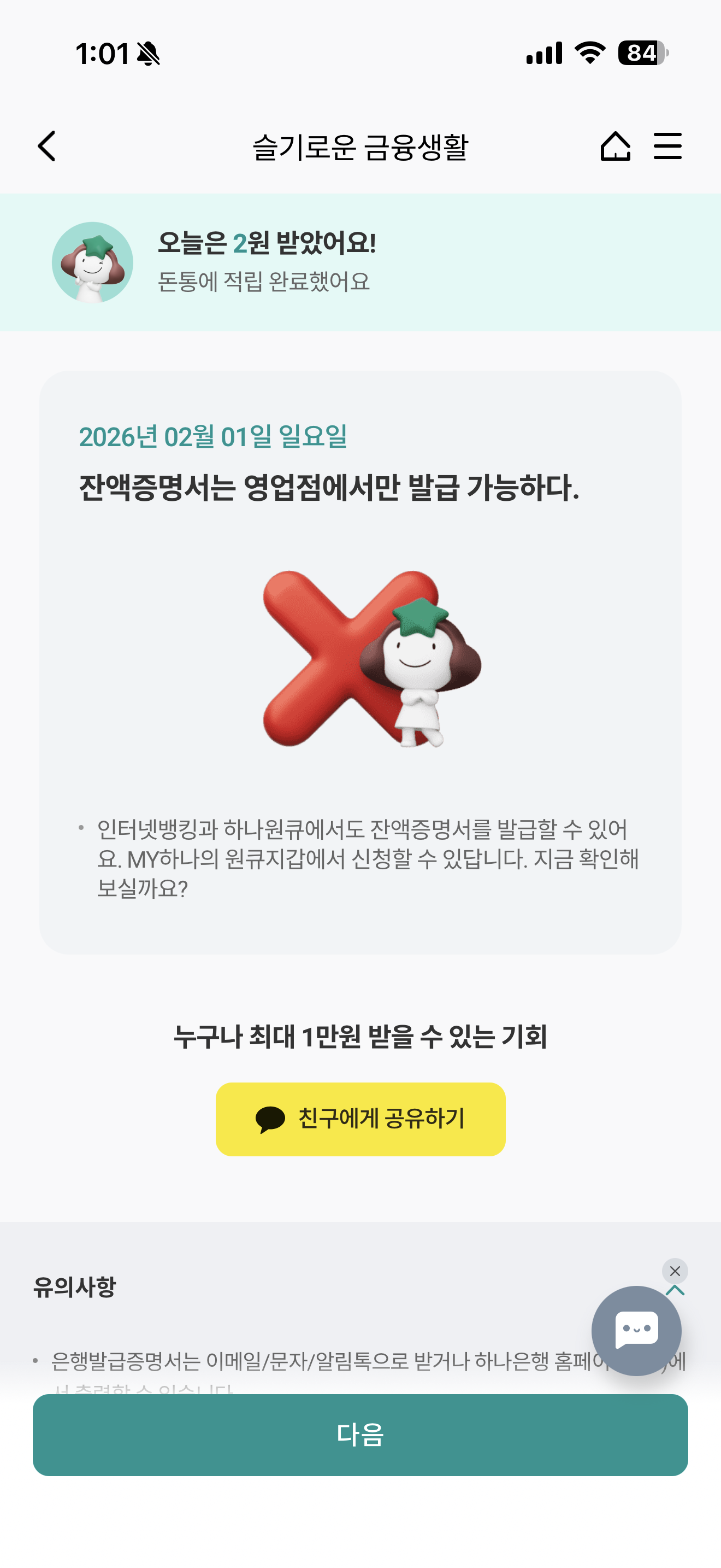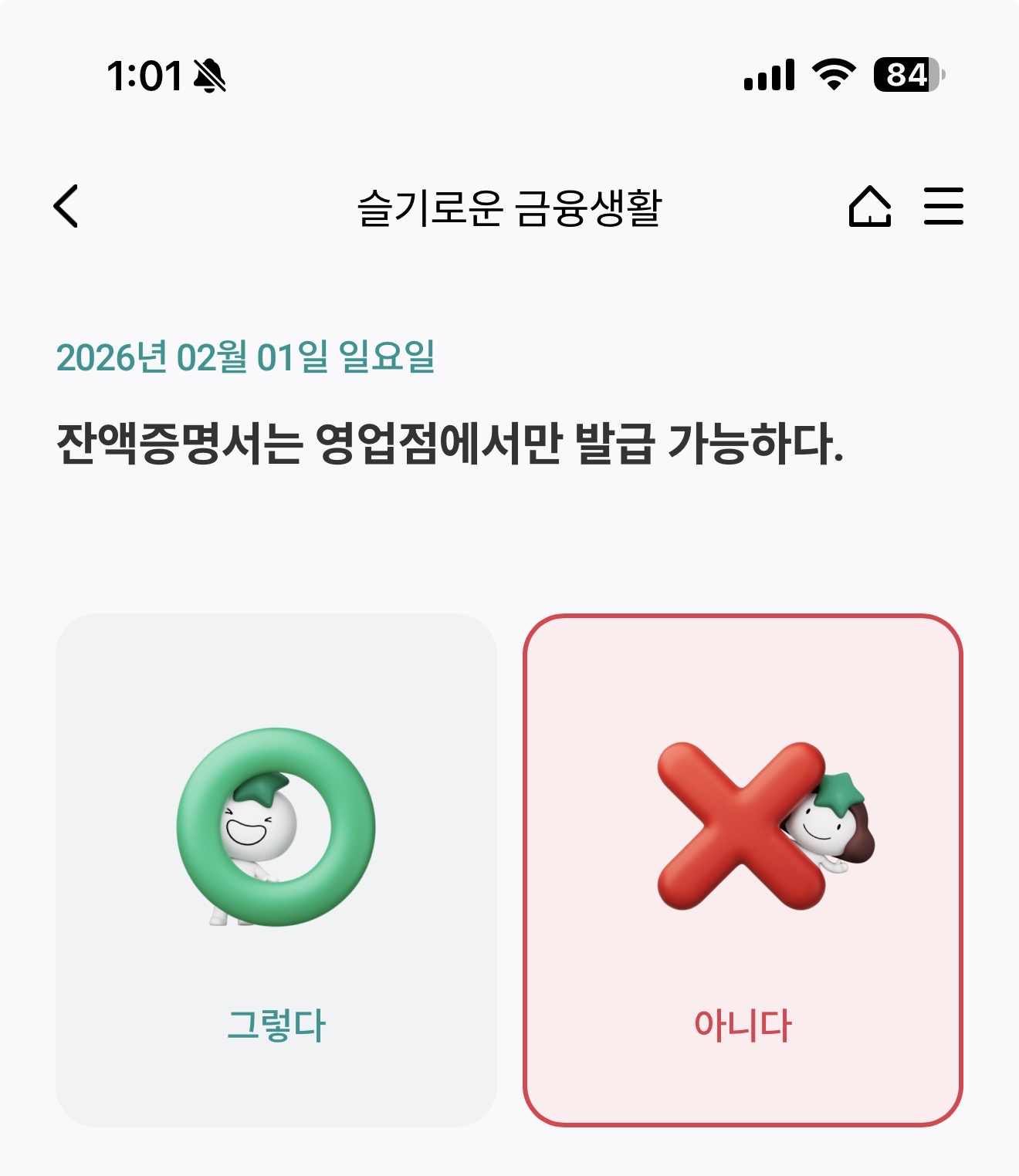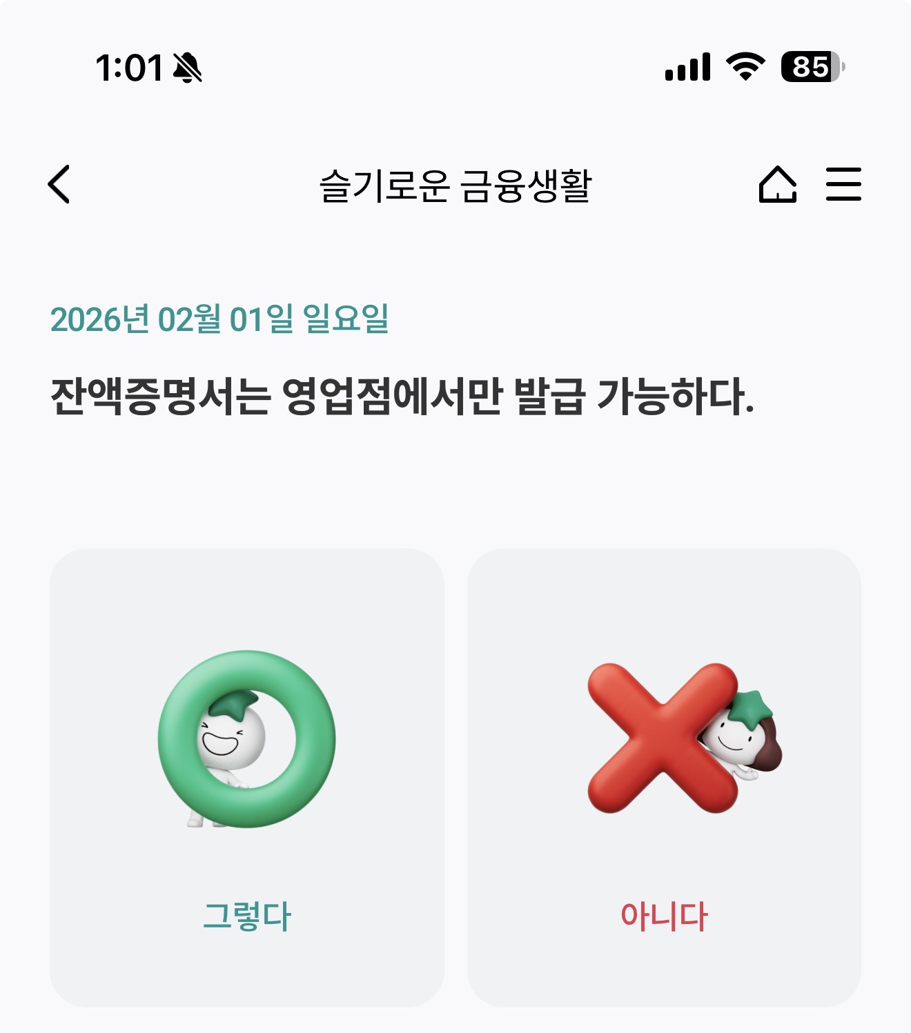 하나원큐 슬기로운 금융생활 OX퀴즈 2월 1일 정답(잔액증명서는 영업점에서만 발급 가능하다)