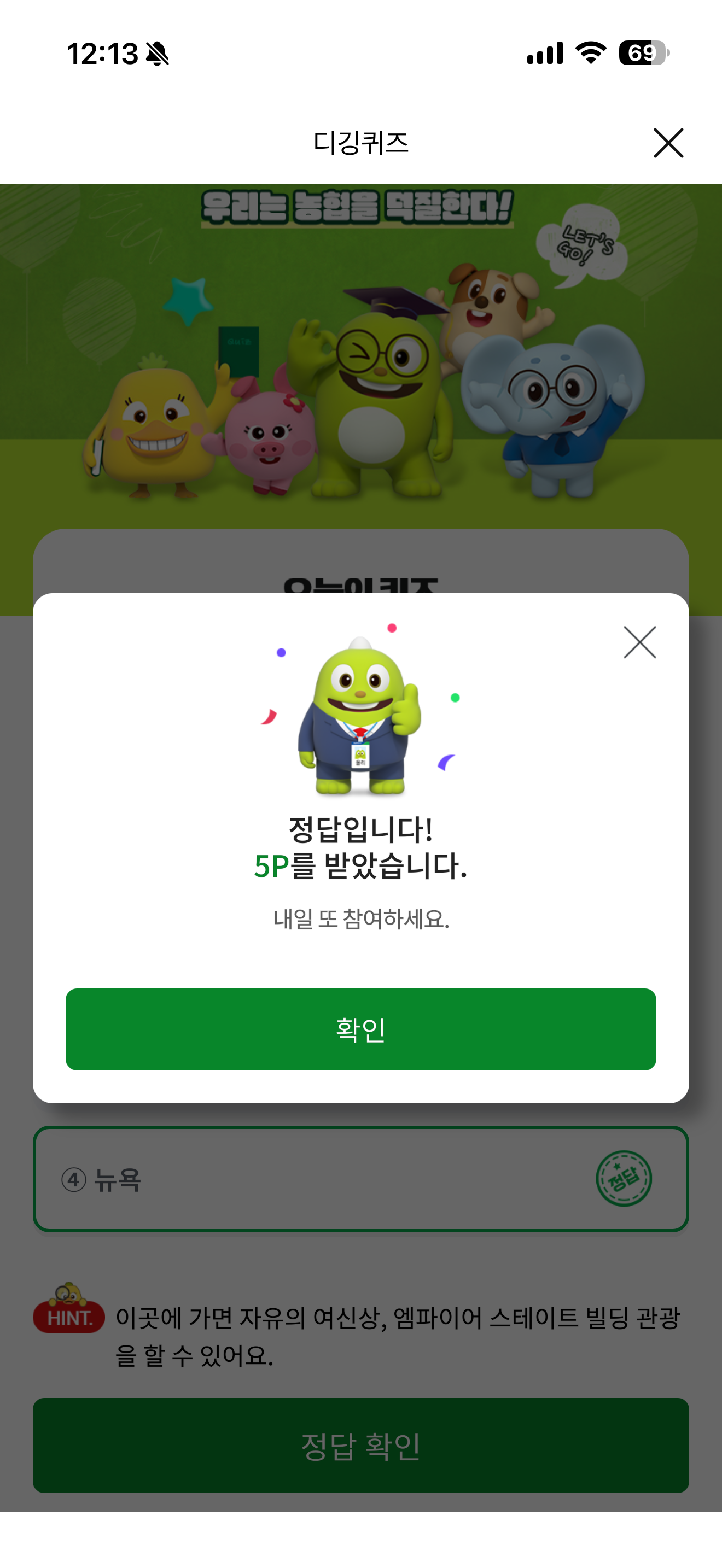 NH올원뱅크 디깅퀴즈 정답은 뉴욕 입니다