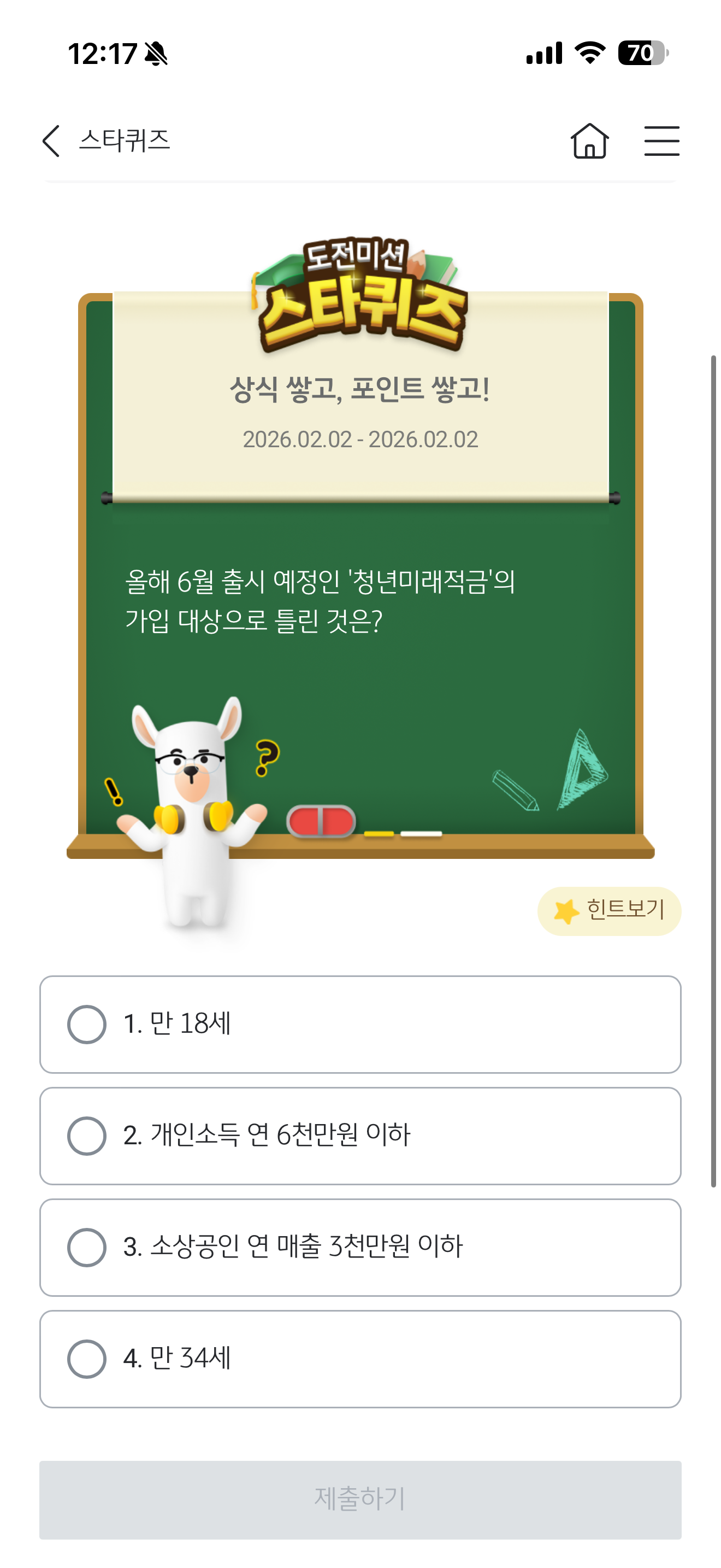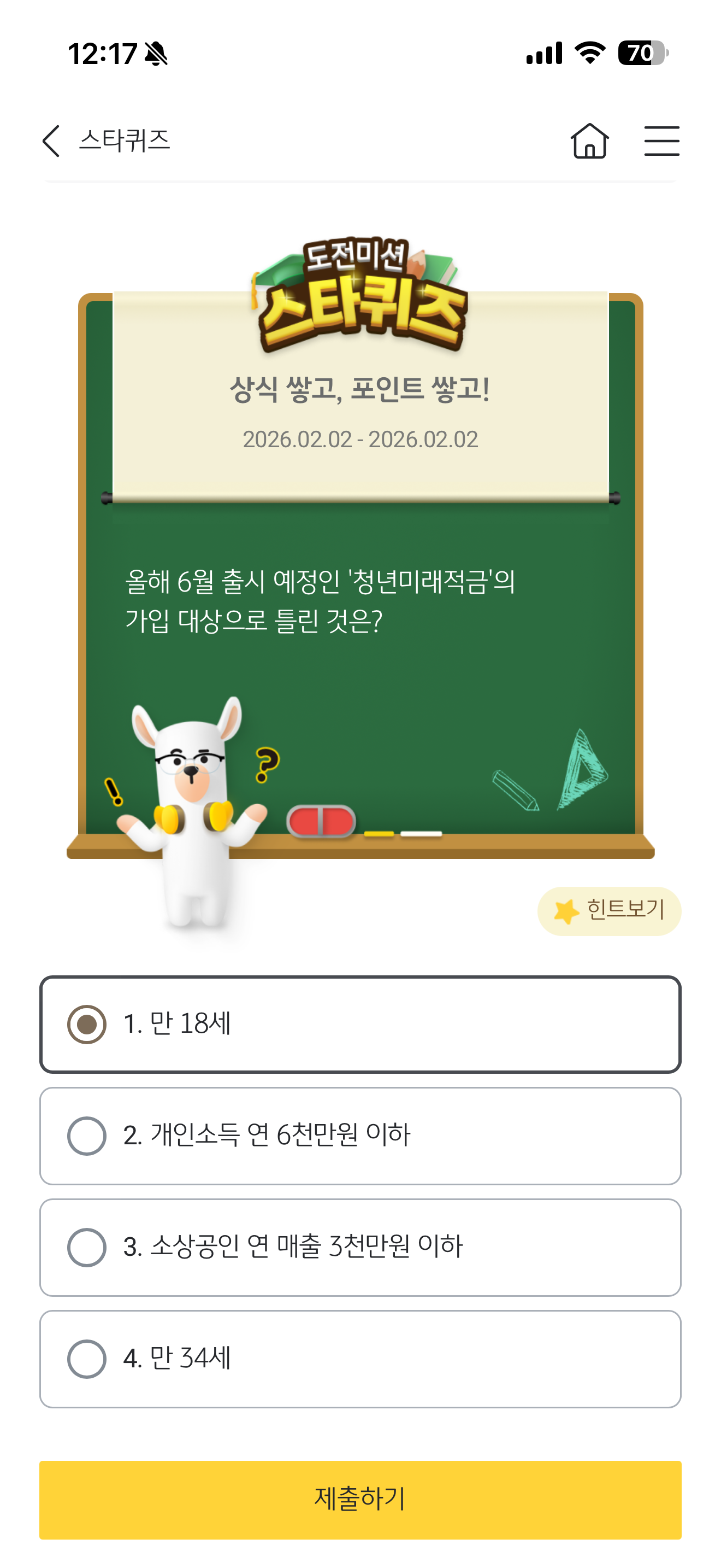 KB스타뱅킹 스타퀴즈 정답은 만 18세 입니다