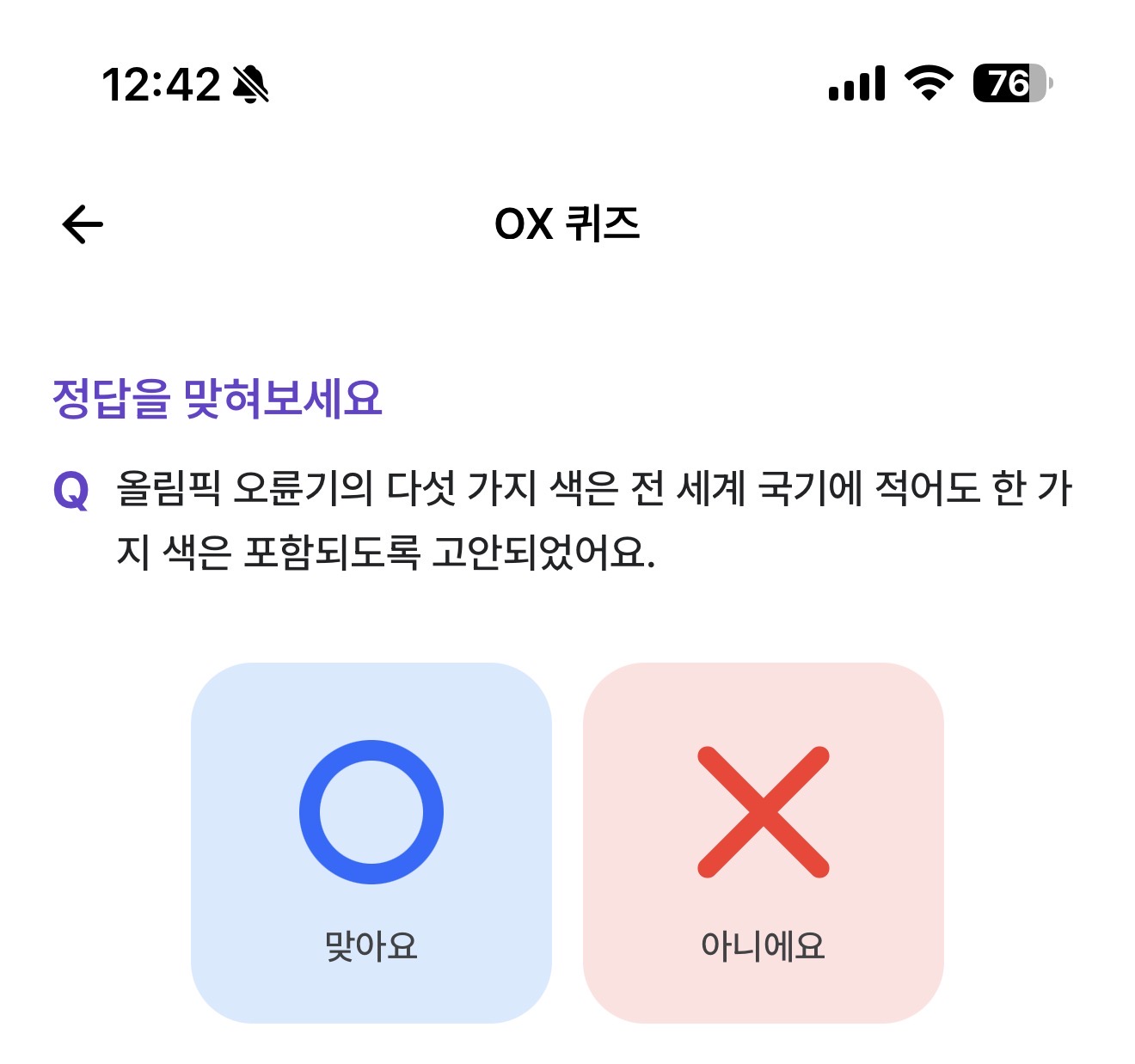 비트버니 OX 퀴즈 2월 2일 정답(올림픽 오륜기의 다섯 가지 색은 전 세계 국기에 적어도 한 가지 색은 포함되도록 고안되었어요)