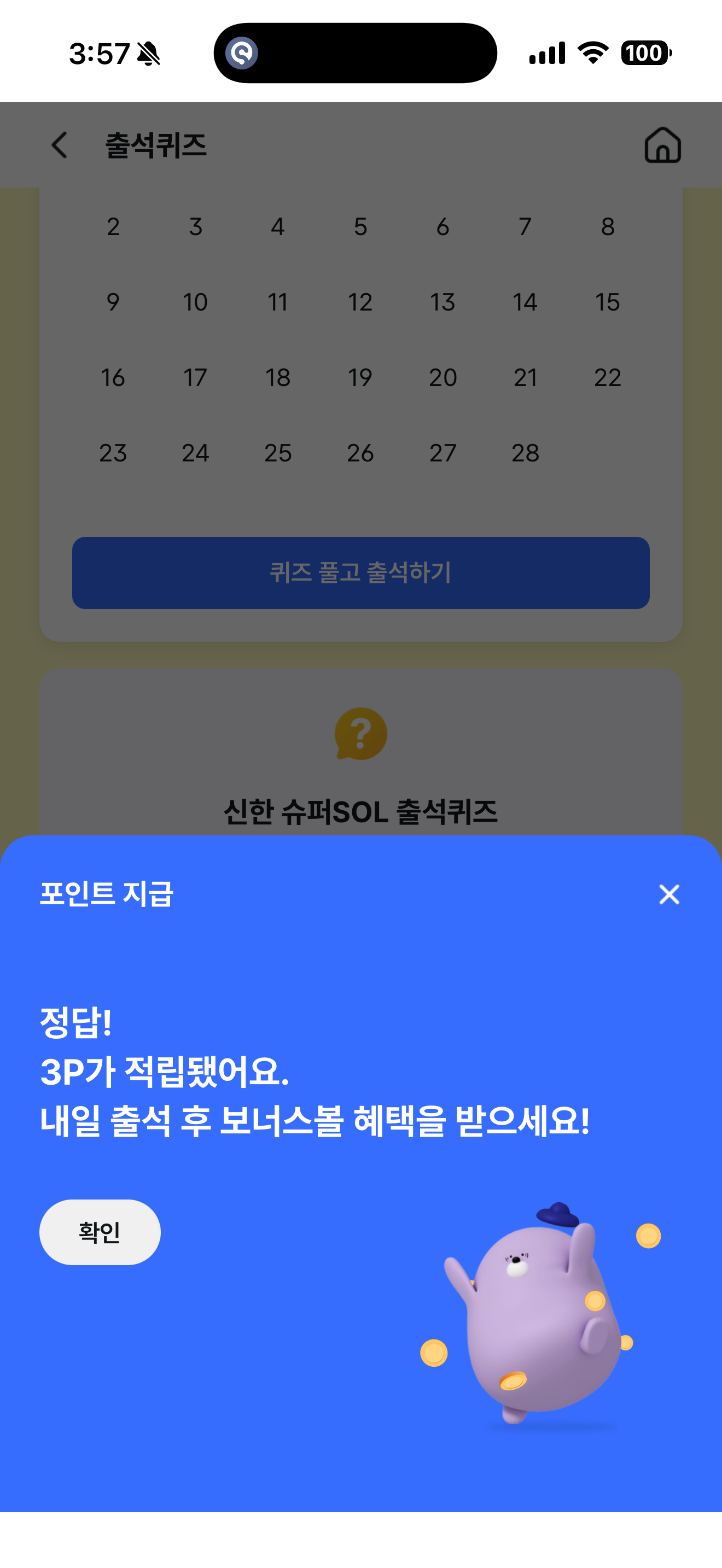 신한 슈퍼SOL 출석퀴즈 2월 2일 문제입니다