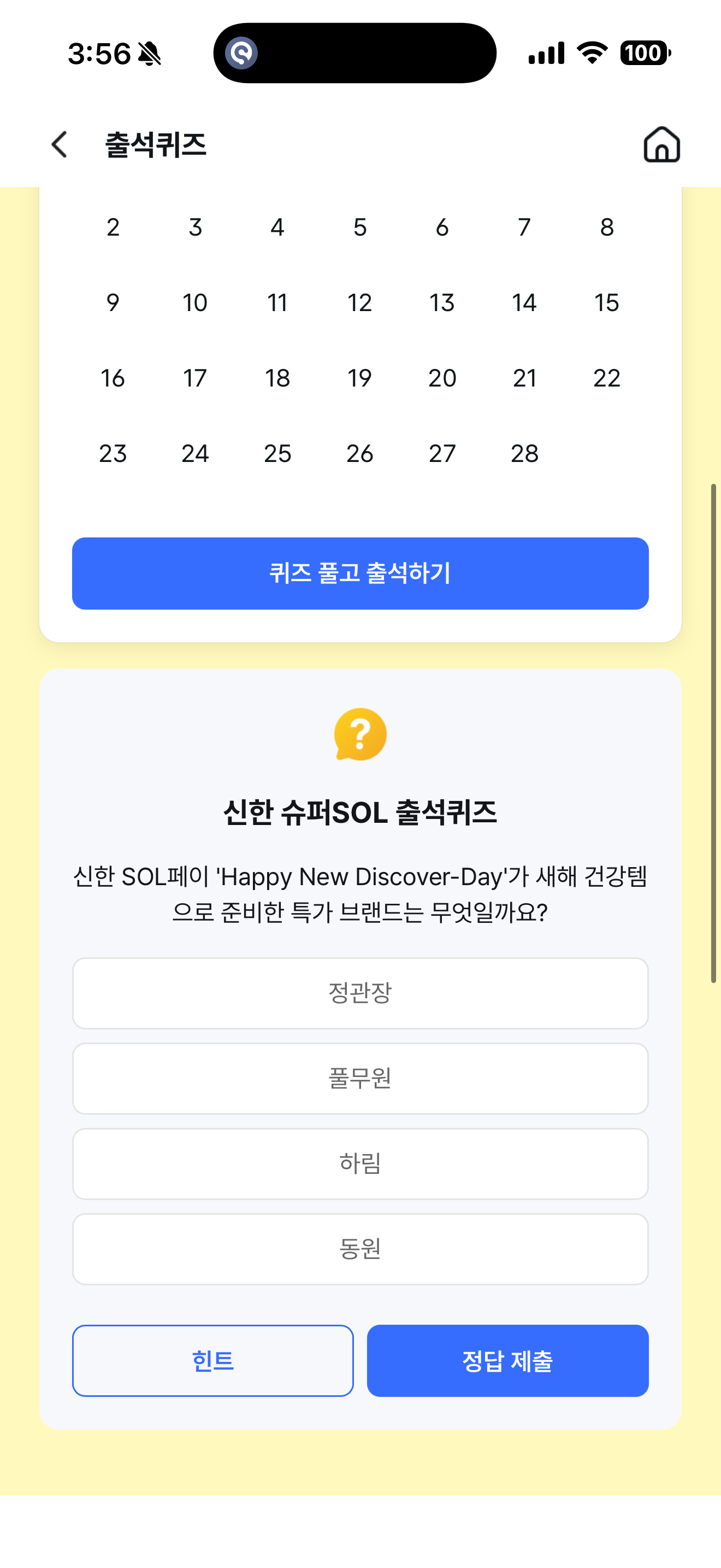 신한 슈퍼SOL 출석퀴즈 정답은 정관장 입니다