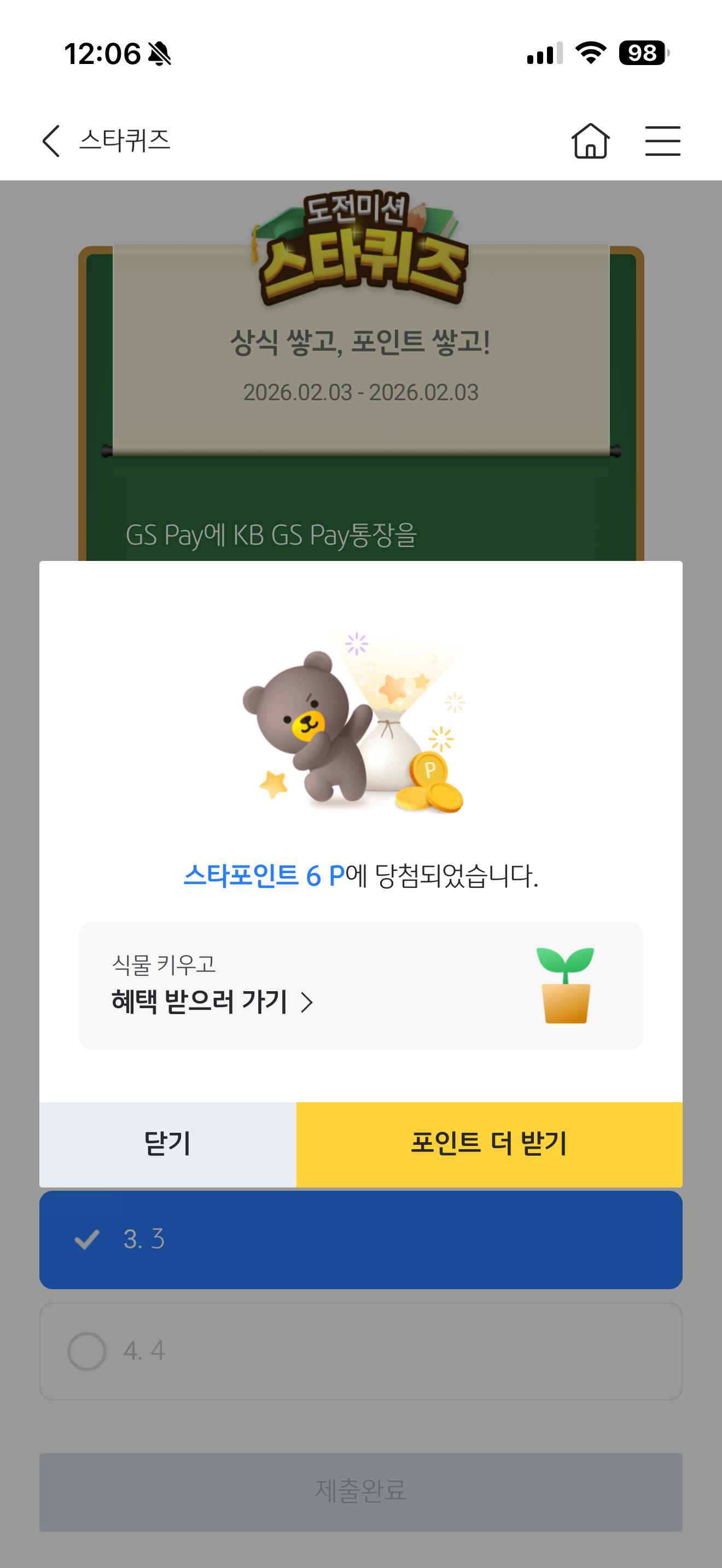 KB스타뱅킹 스타퀴즈 정답은 3 입니다