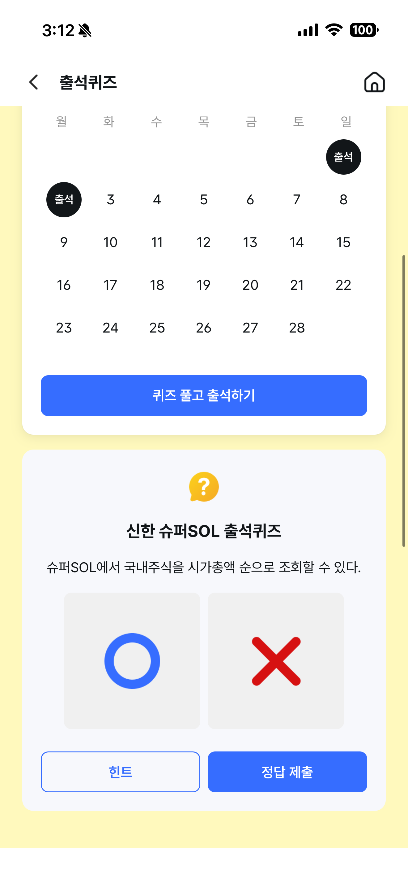 신한 슈퍼SOL 출석퀴즈 정답은 O 입니다