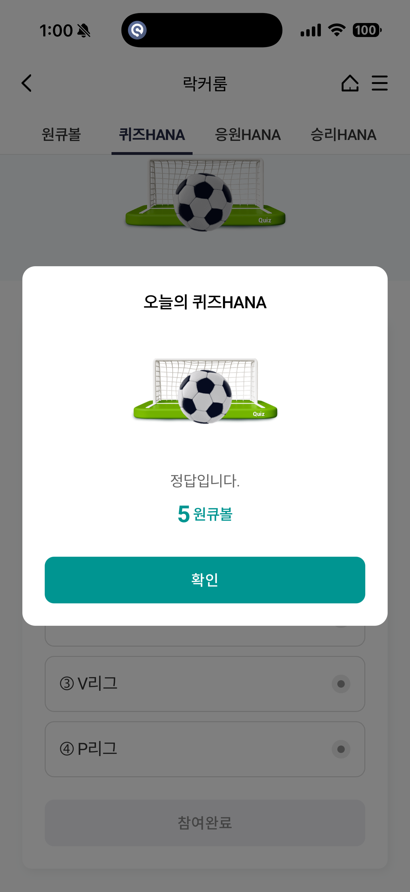 하나원큐 축구 play 퀴즈 HANA 정답은 K리그 입니다