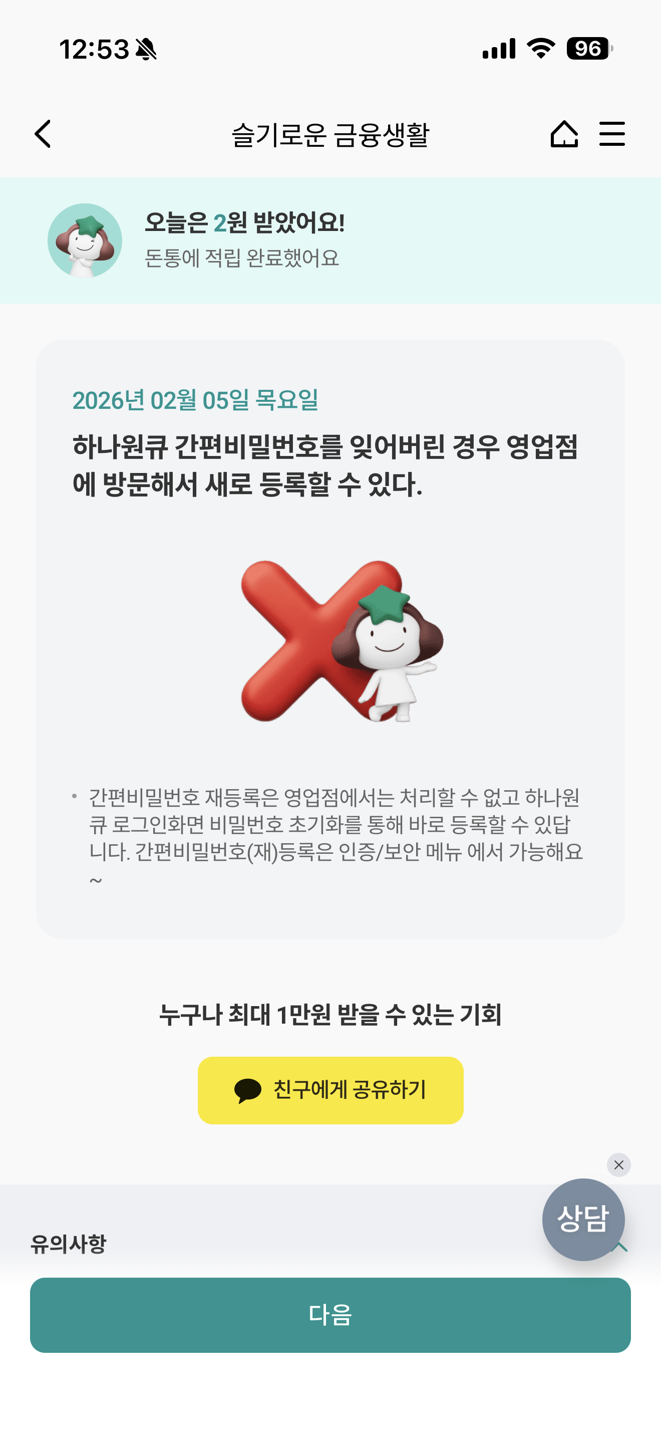 하나원큐 슬기로운 금융생활 OX 퀴즈 정답은 X 입니다