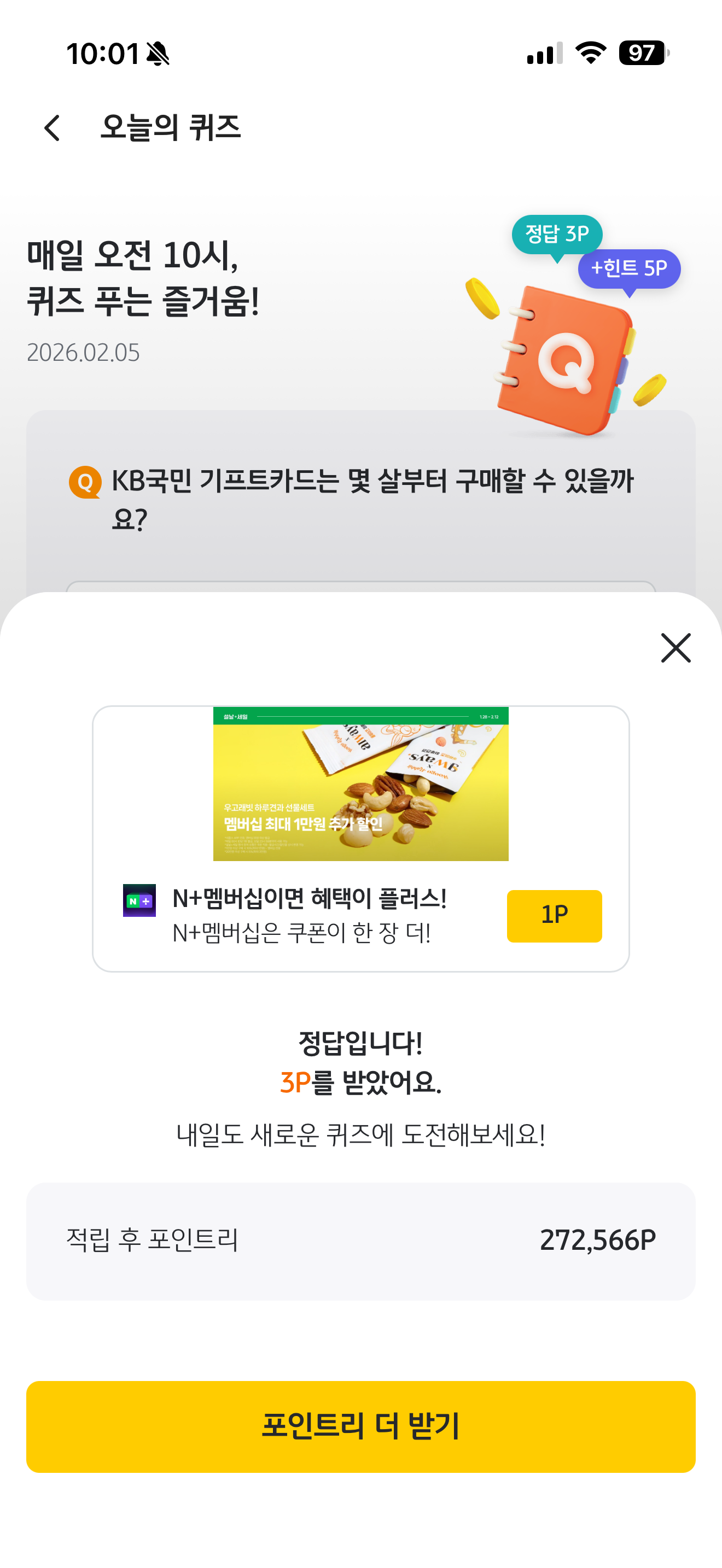 KB Pay 오늘의 퀴즈 2월 5일 문제입니다