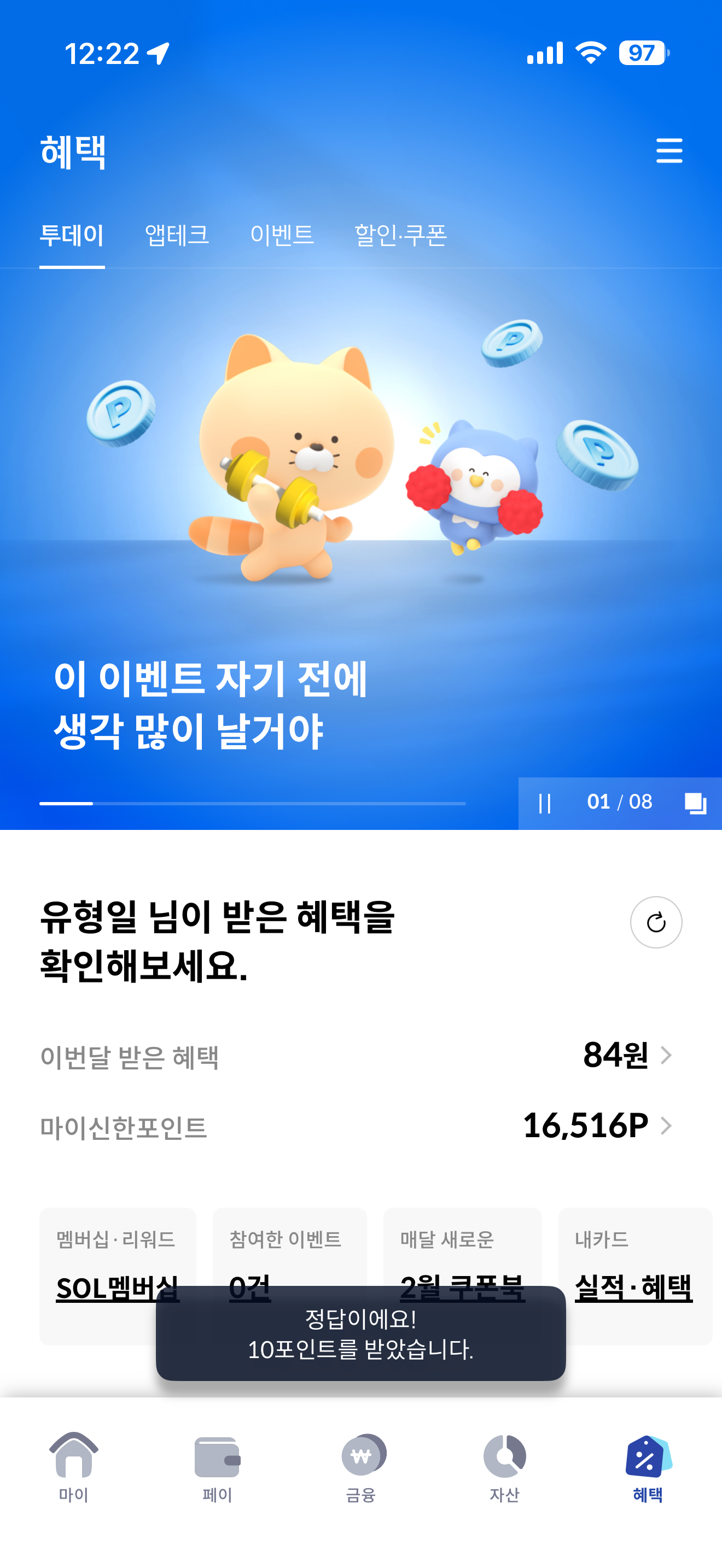 신한카드 퀴즈팡팡 2월 6일 문제입니다