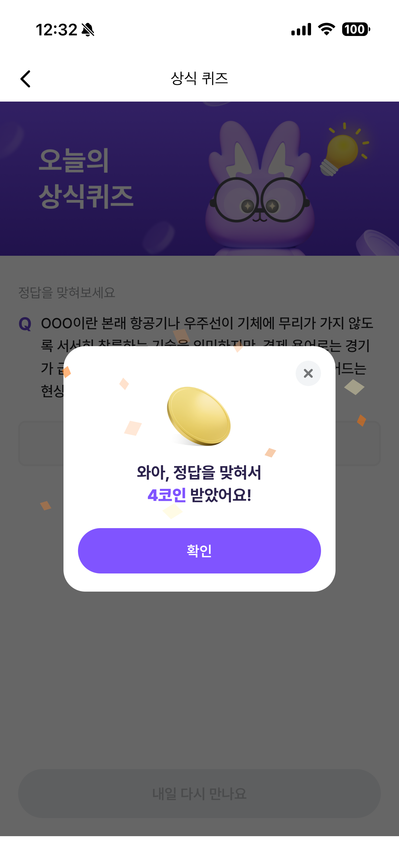 비트버니 오늘의 퀴즈 정답은 연착륙 입니다