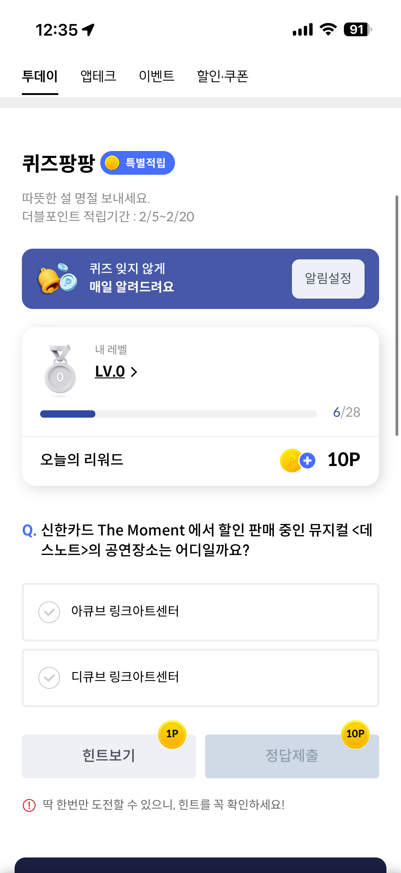 신한카드 퀴즈팡팡 2월 7일 문제입니다