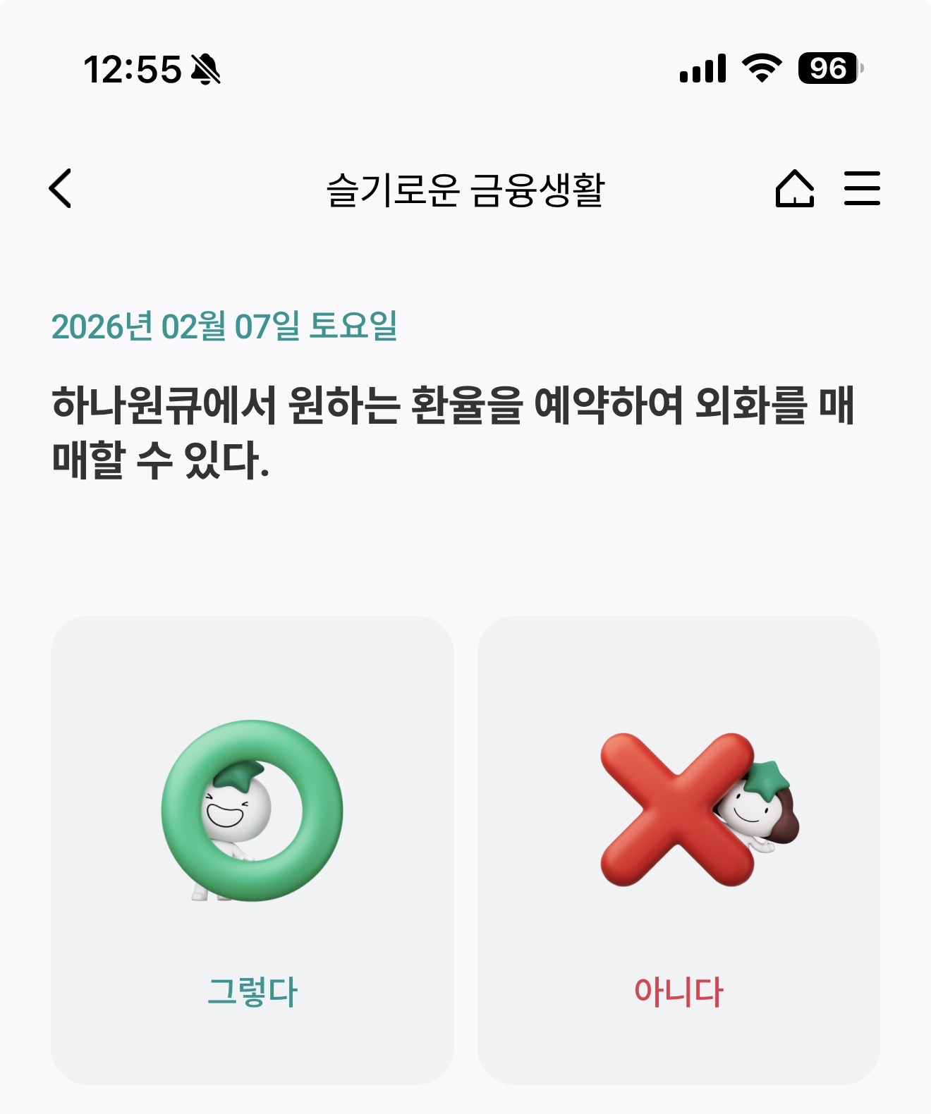 하나원큐 슬기로운 금융생활 OX퀴즈 2월 7일 문제입니다