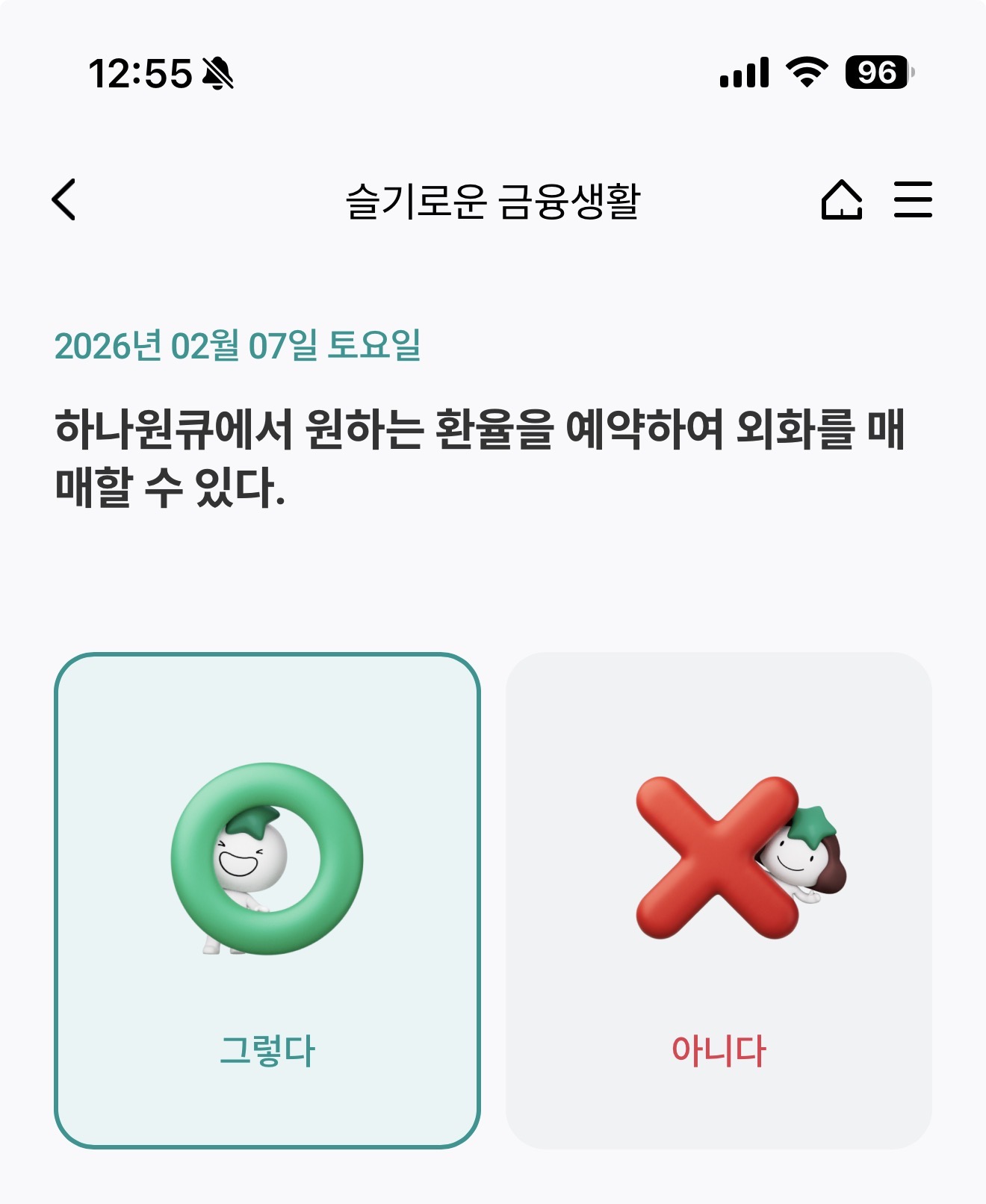 하나원큐에서 원하는 환율을 예약하여 외화를 매매할 수 있다 O, X 퀴즈인데요. 요즘은 환율 변동이 심해서 달러를 보유하고 고환율로 매매를 하고자 하는데요. 과연 정해진 환율을 예약하여 매매가 가능할까요? 잘 참고해 두세요