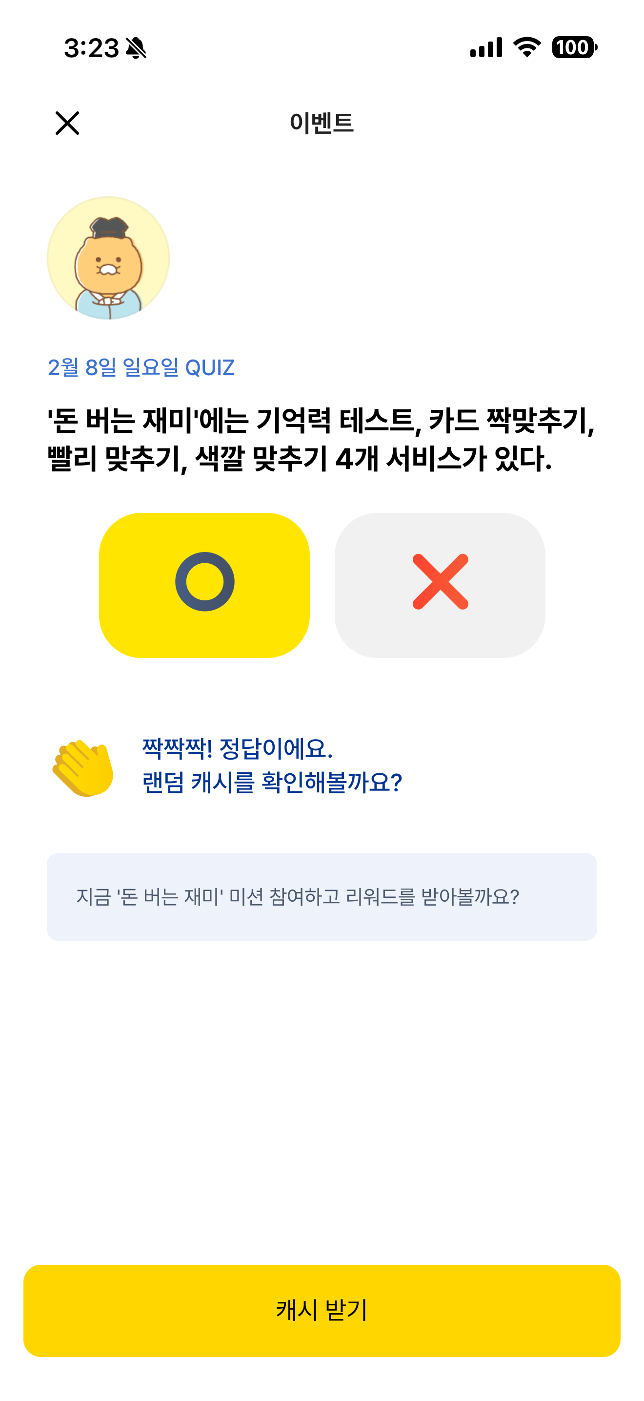 카카오뱅크 OX 퀴즈 정답은 O 입니다