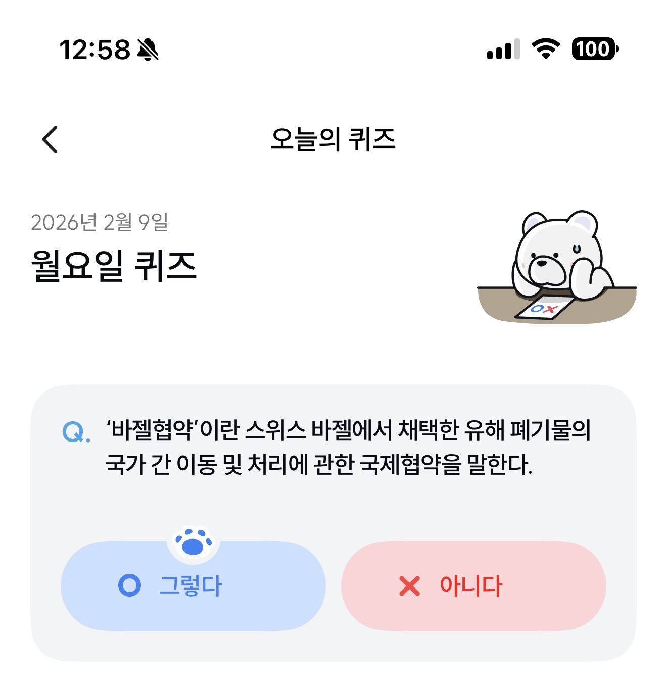 기후행동 기회소득 오늘의 퀴즈 정답은 그렇다 입니다