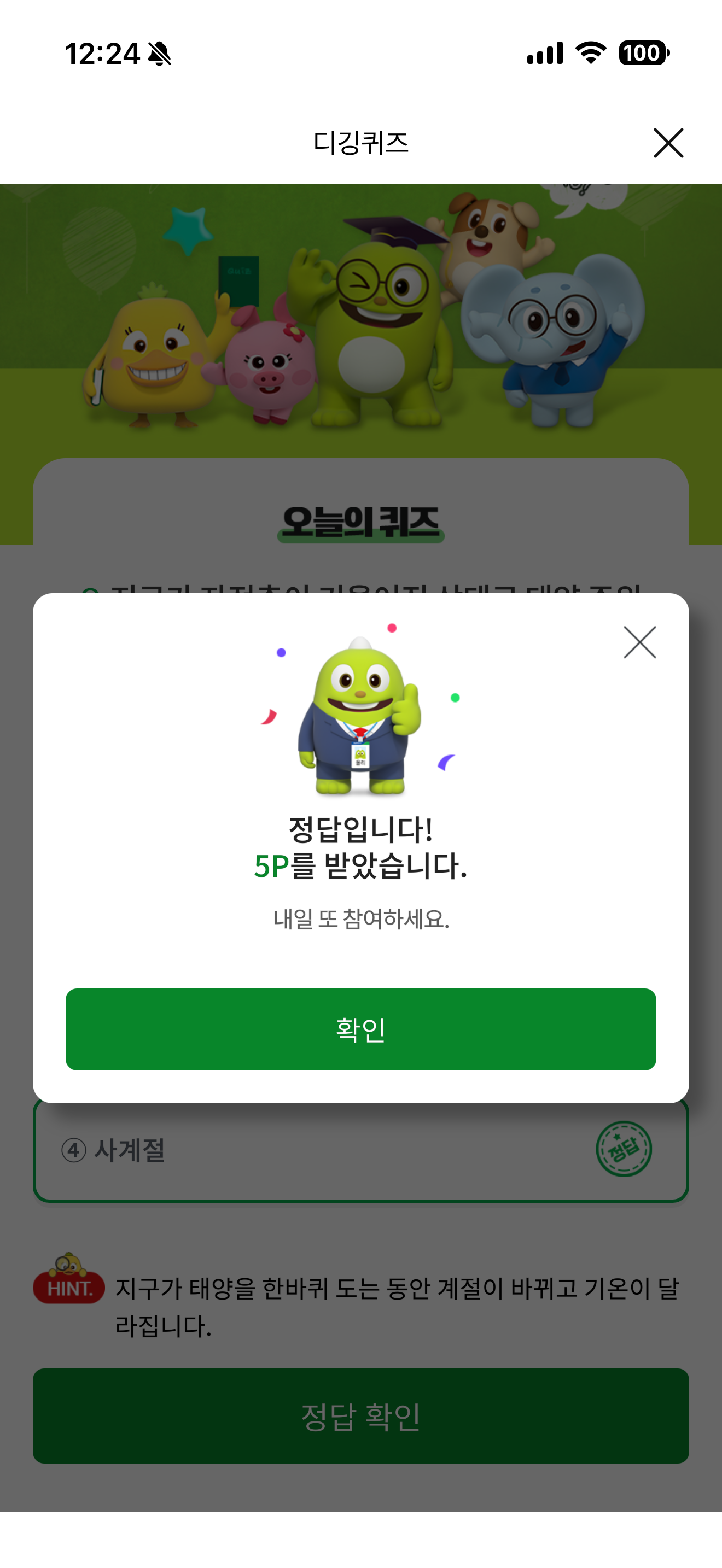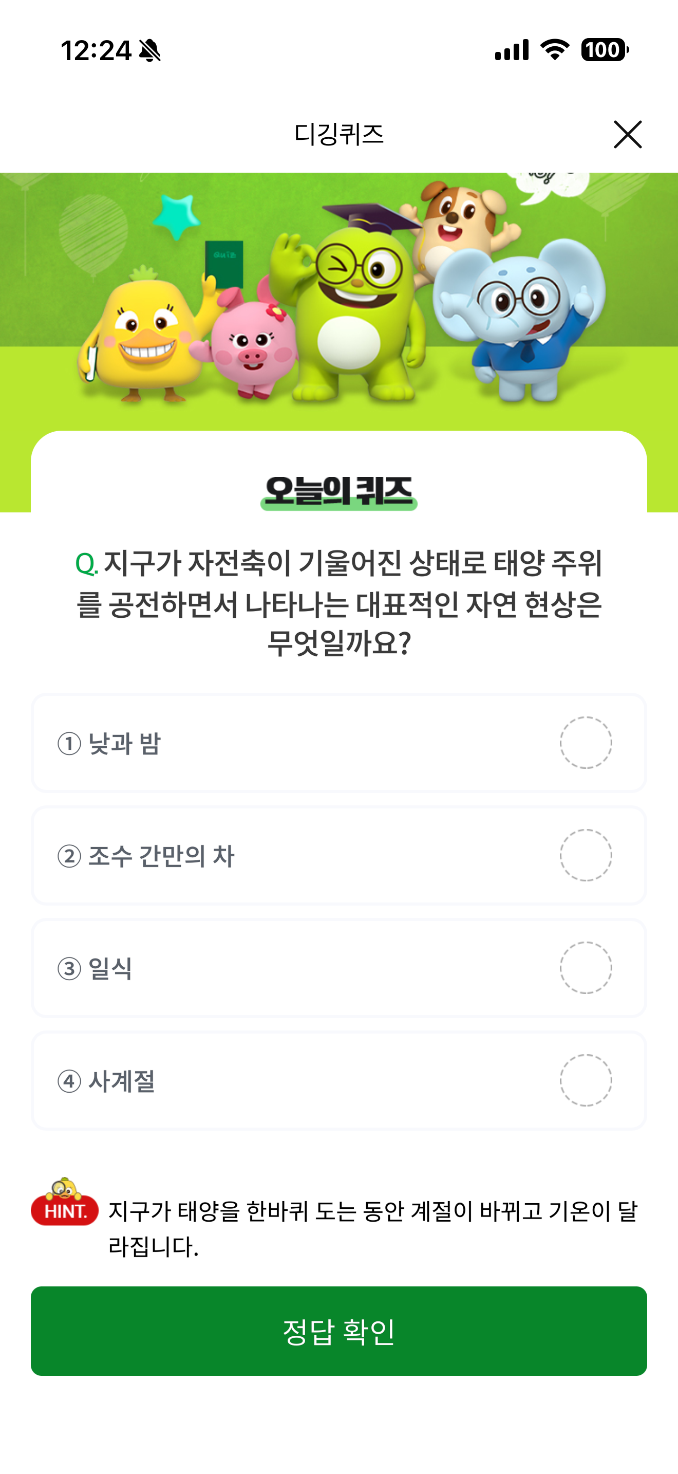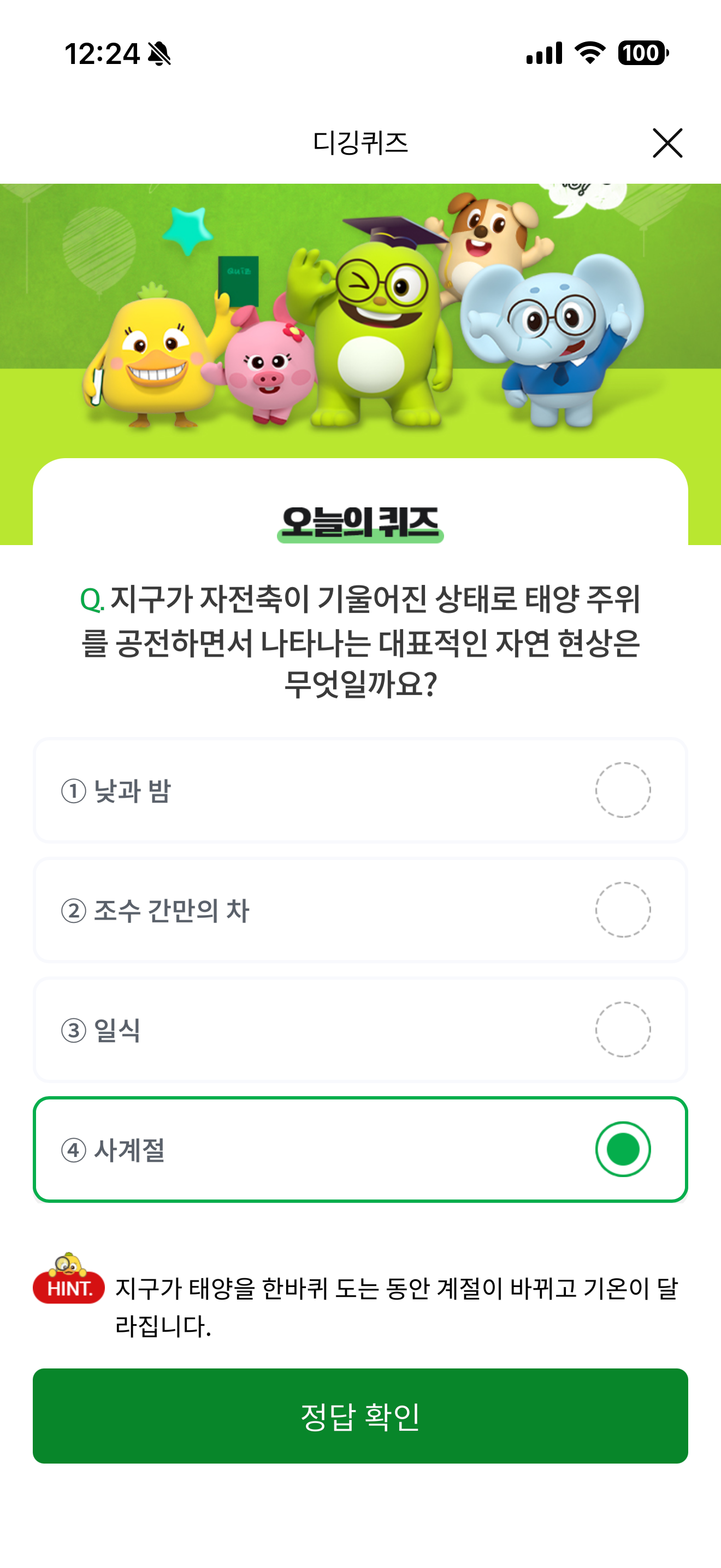 NH올원뱅크 디깅퀴즈 정답은 사계절 입니다